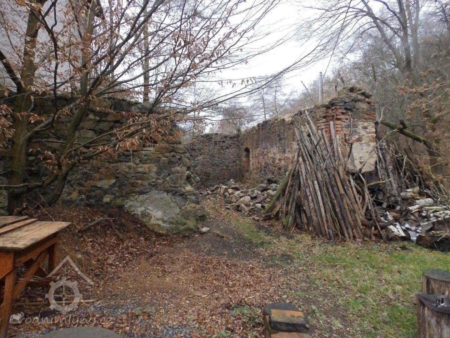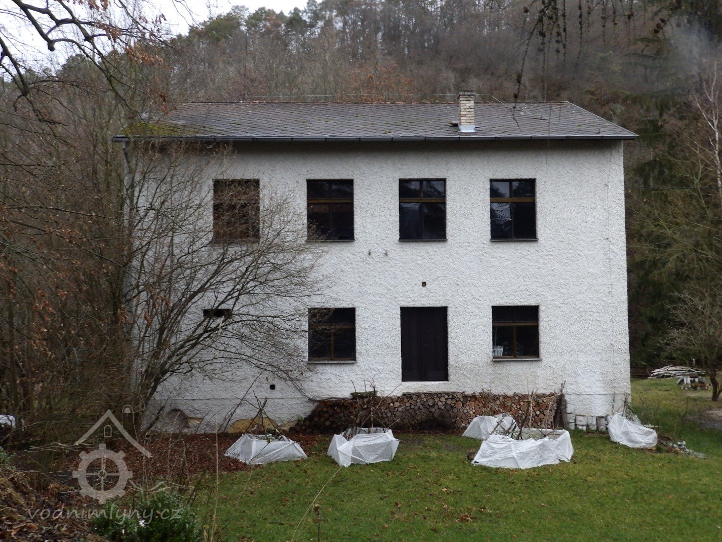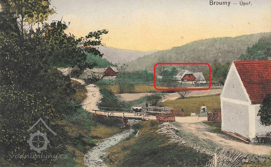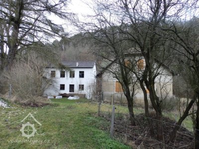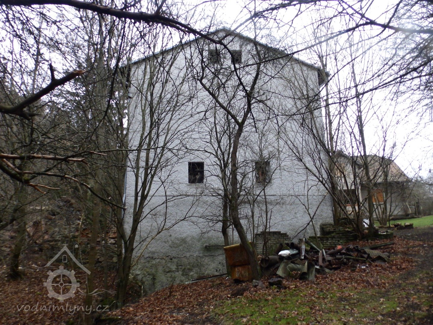 Mlýn na samotě severně od Broum, pozoruhodná je instalace Francisovy turbíny ve staré lednici na místě vodního kola.