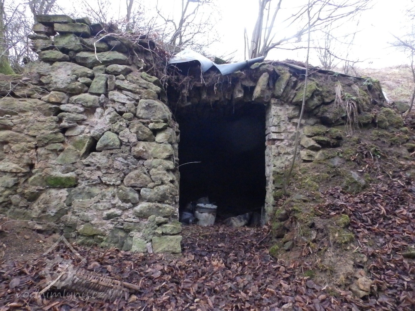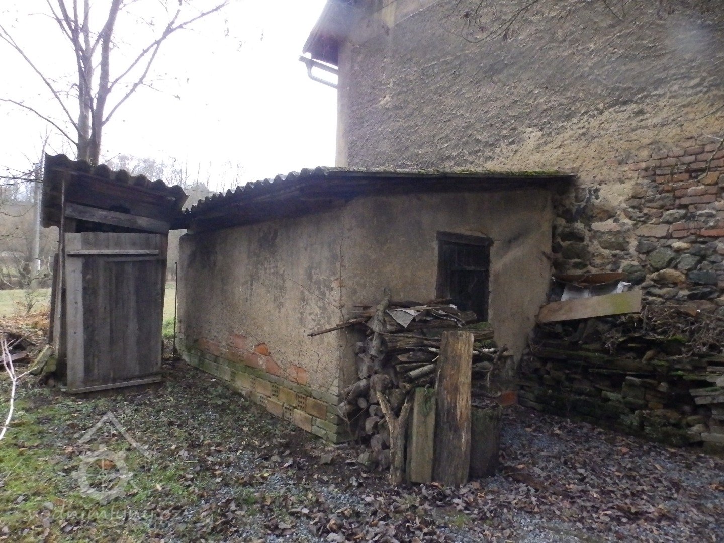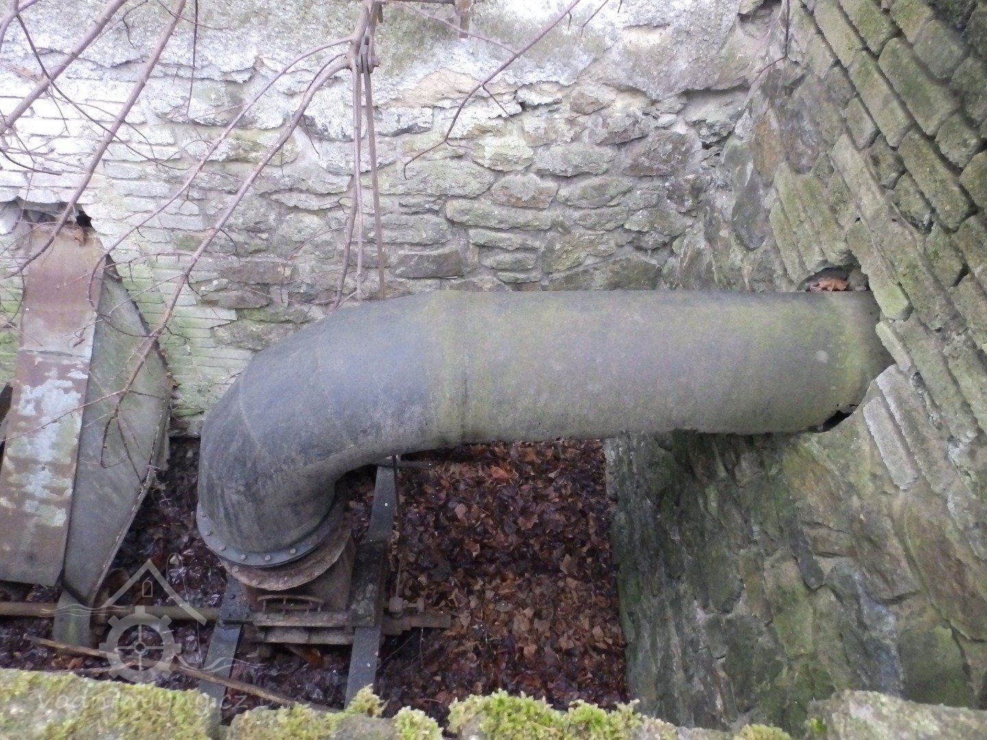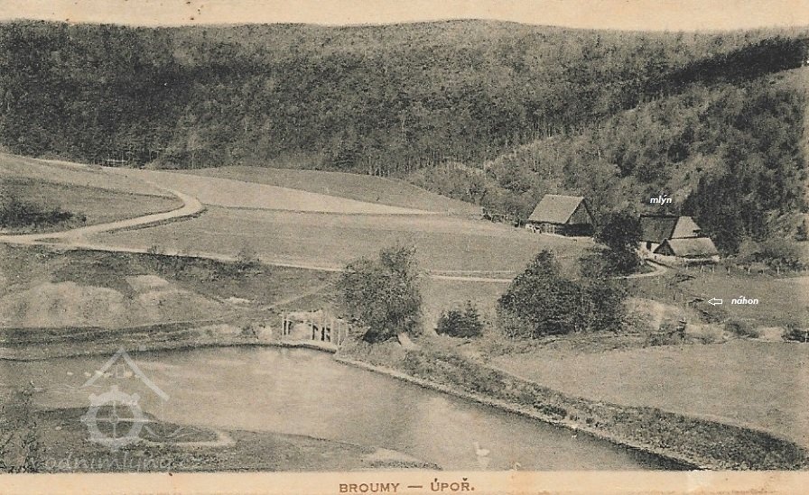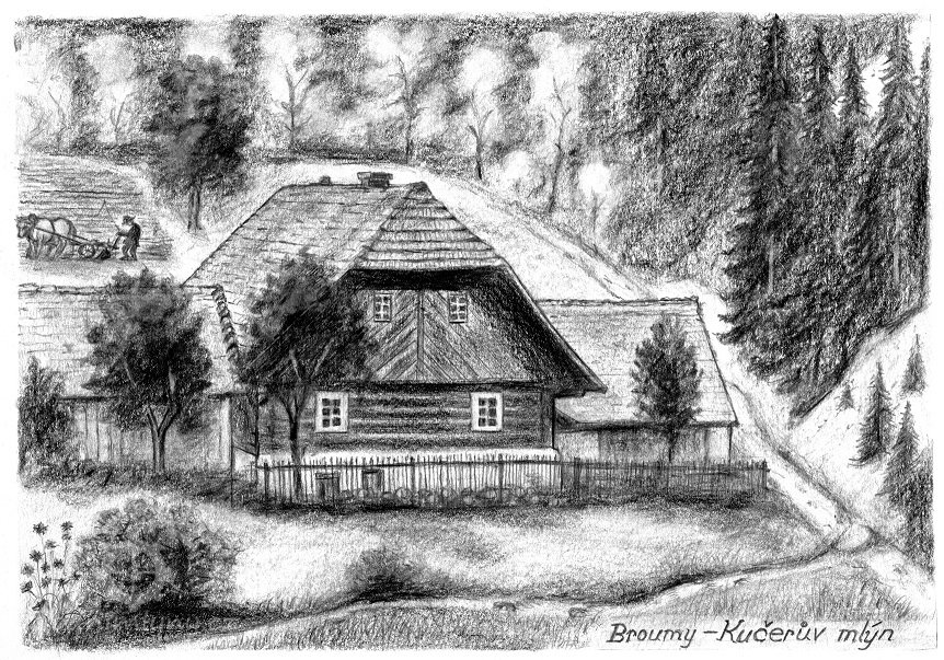 Mlýn na samotě severně od Broum, pozoruhodná je instalace Francisovy turbíny ve staré lednici na místě vodního kola.
