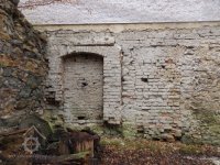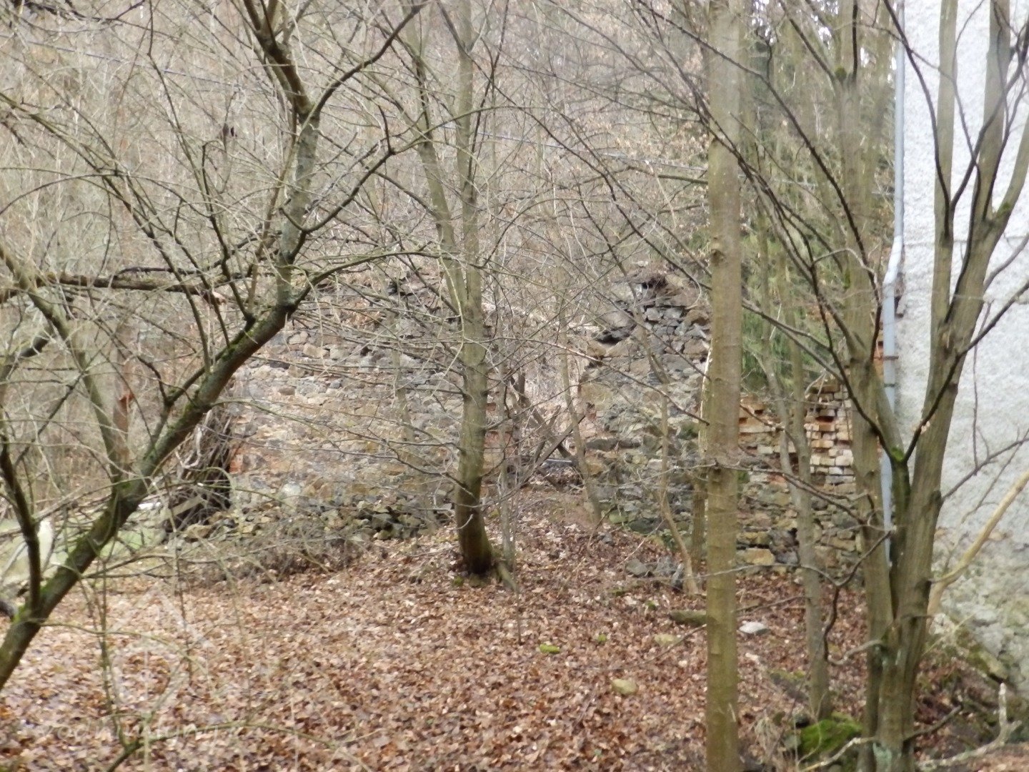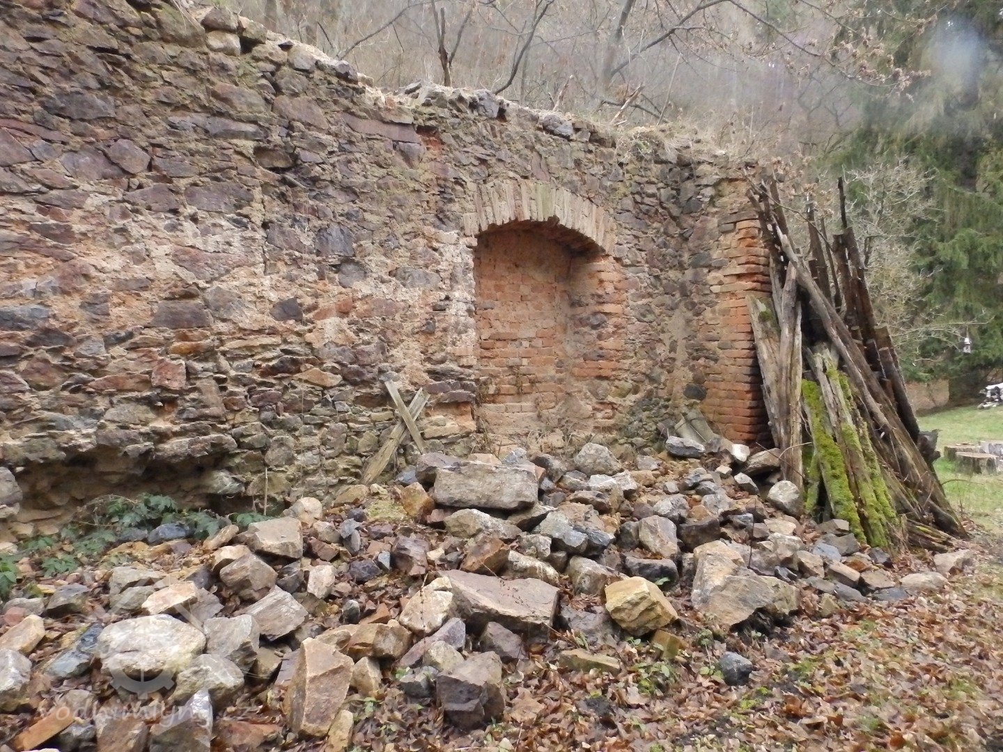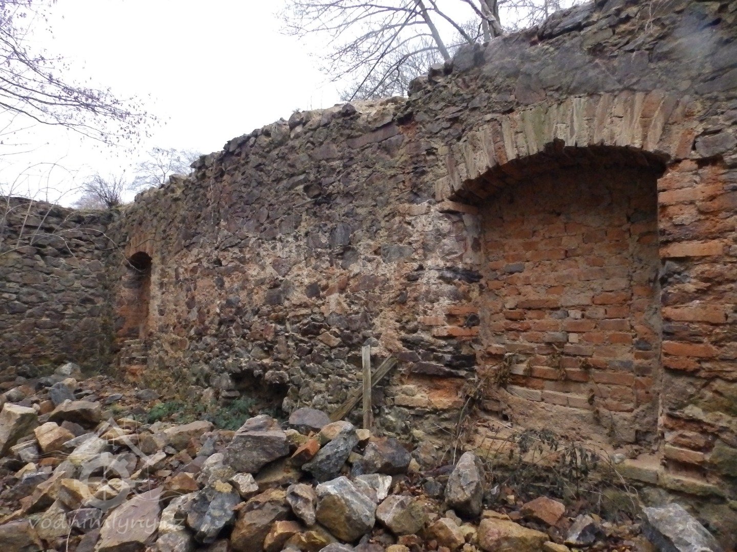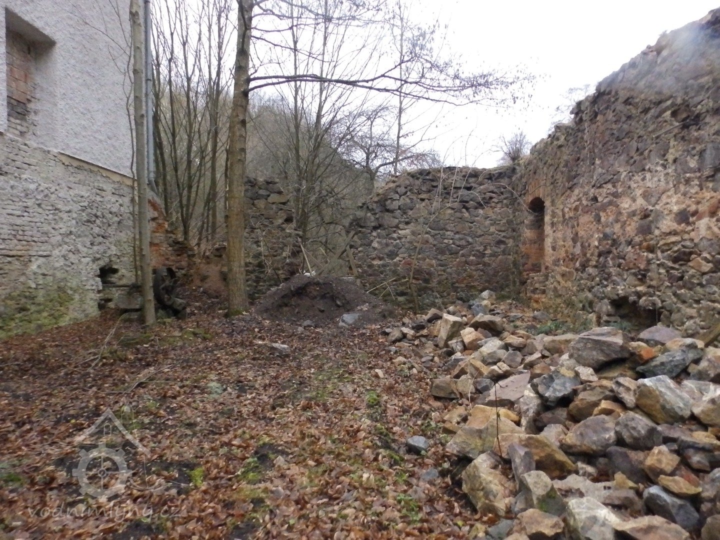 Mlýnice a obytný domek kolmo na sebe. Na severní straně mlýnice přístavek, dnes ve zříceninách.