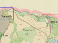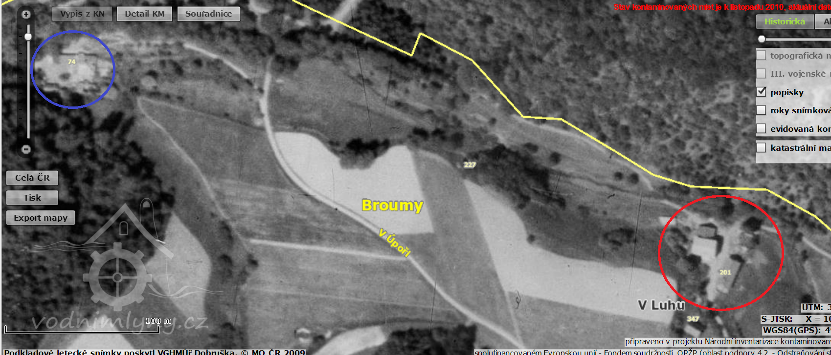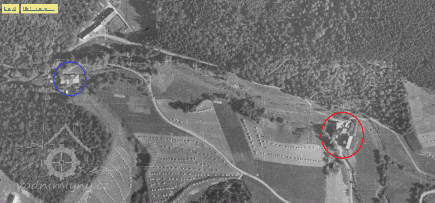 Původně pila náležející k Broumskému (Hořejšímu) mlýnu čp. 40, po pol. 19. stol. samostatný obilní mlýn, 1930 již nebyl v provozu.
