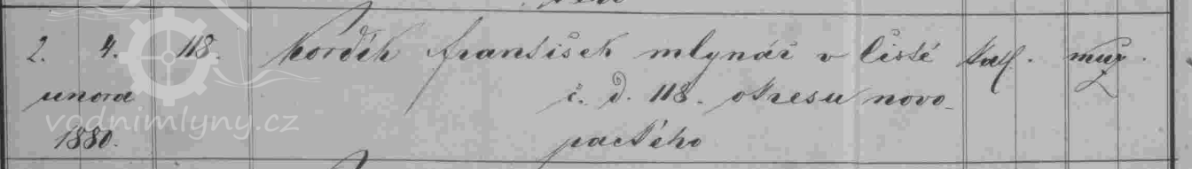 otec: František Linhart, mlynář, Čistá u Horek č.d.118