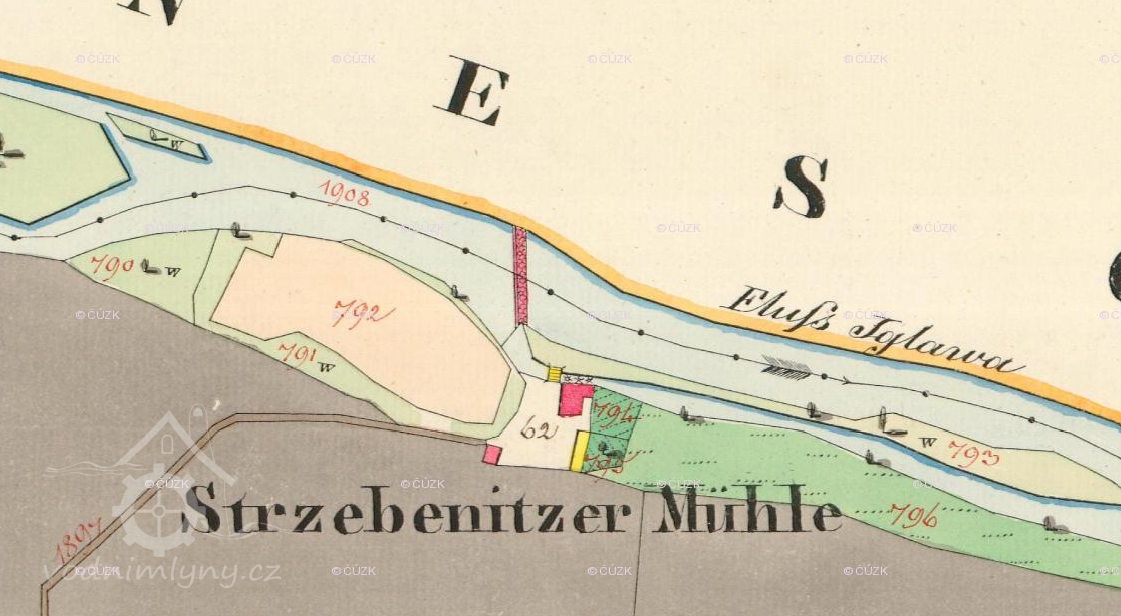 Pirochtův mlýn, (Čermákův, Třebenický). Ten byl obnoven podle vyrytého nápisu na větrném plechu roku 1771. Na Třebenickém mlýně byl mlynářem Matěj Čermák (*1720 v Ivančicích), jeho syn Pavel (*1764) později z Třebenického mlýna odešel do Jevišovic.