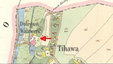 Na mapách z 1. poloviny 19. století (II. vojenské mapování, indikační skica, císařský povinný otisk) je objekt nazýván Dolejssi Walzwerk.(HŠ)