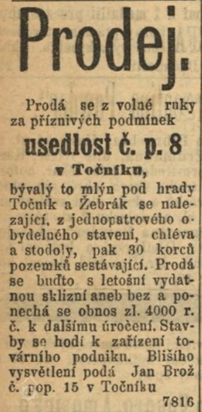 1885 usedlost nabízena k prodeji. (RR)