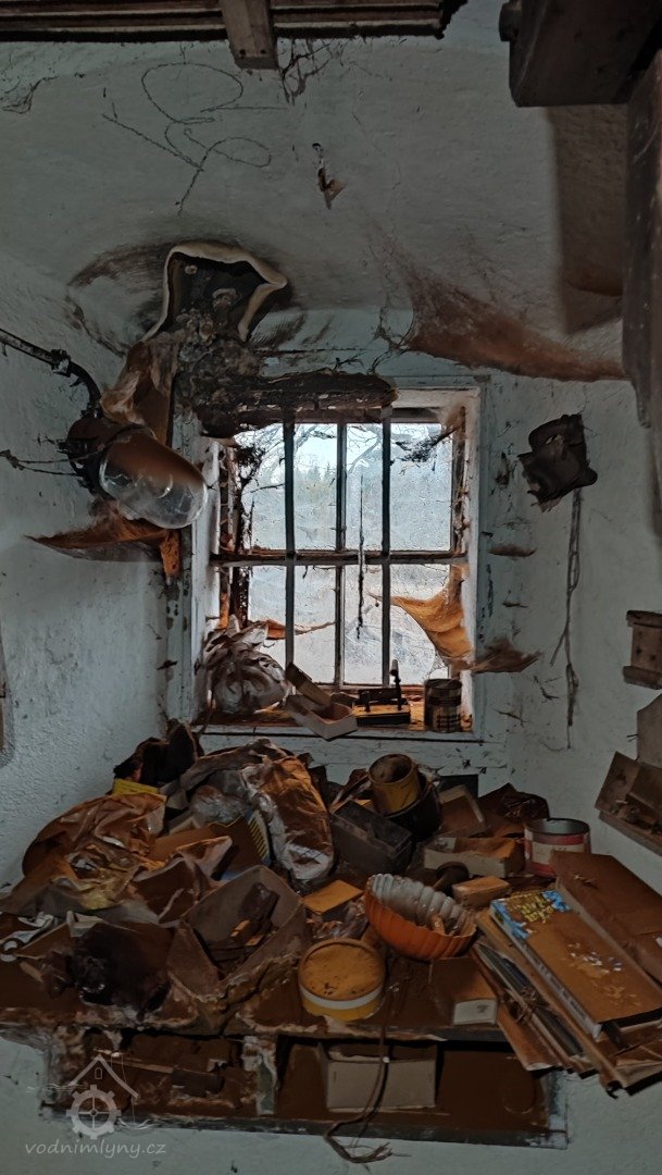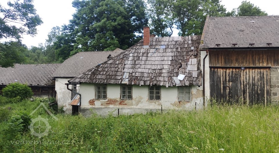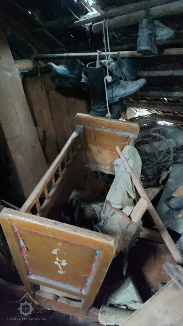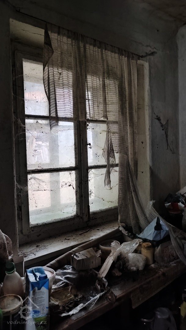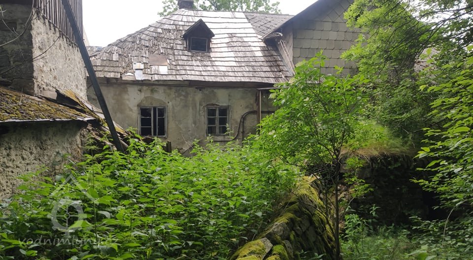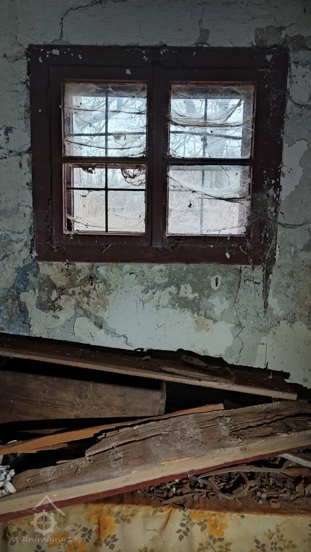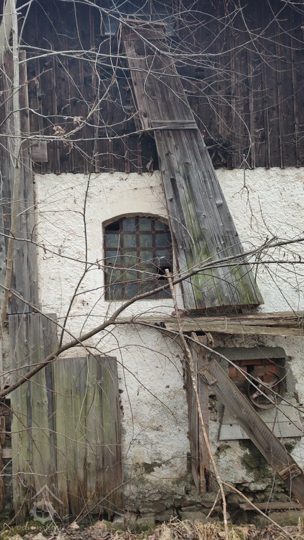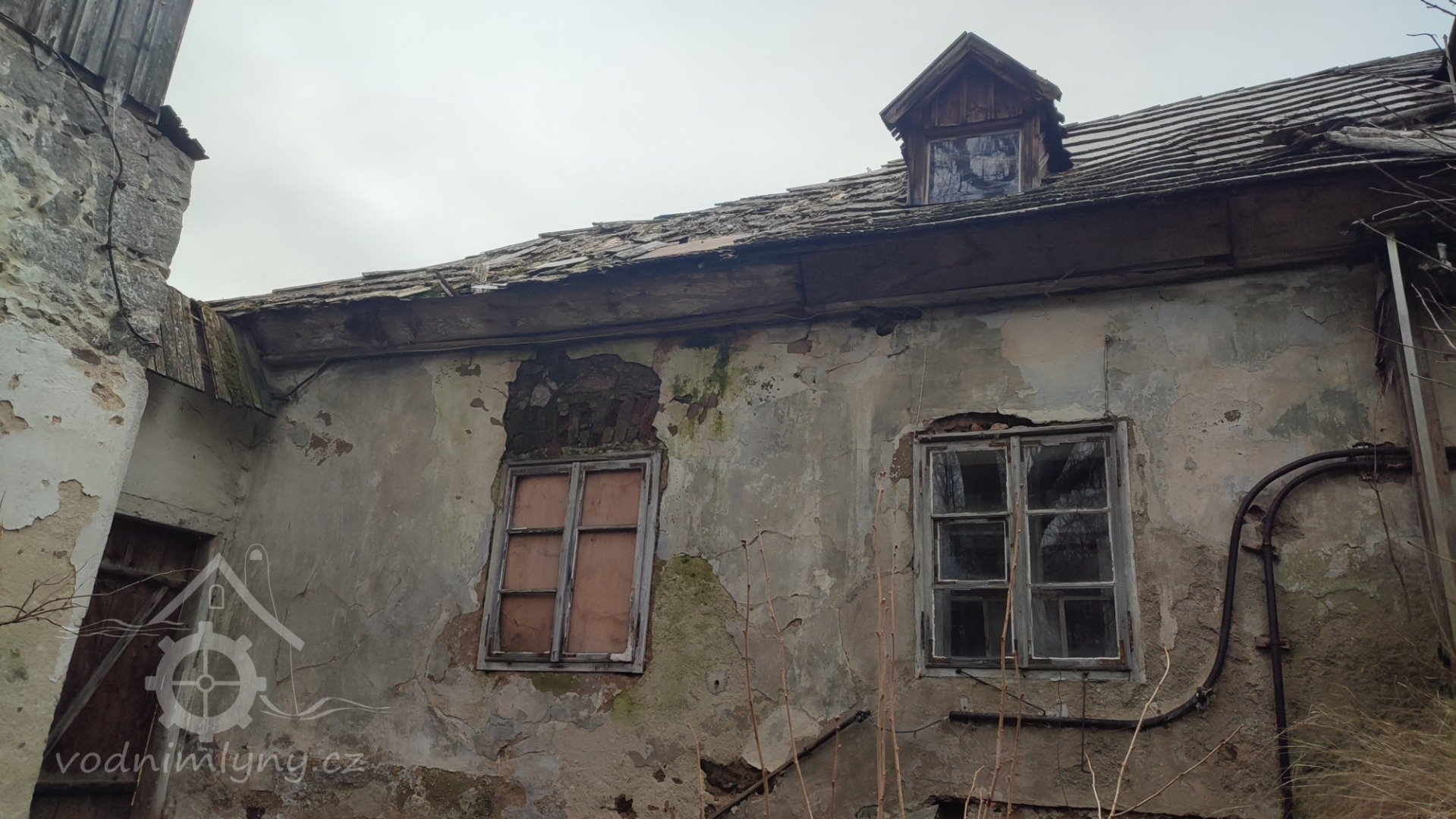 Unikátně zachovalý mlýn a katr, bohužel značně teče do šindelové střechy nad obytnou částí a dům je volně přístupný oknem.