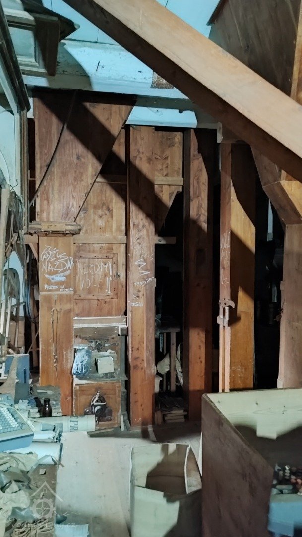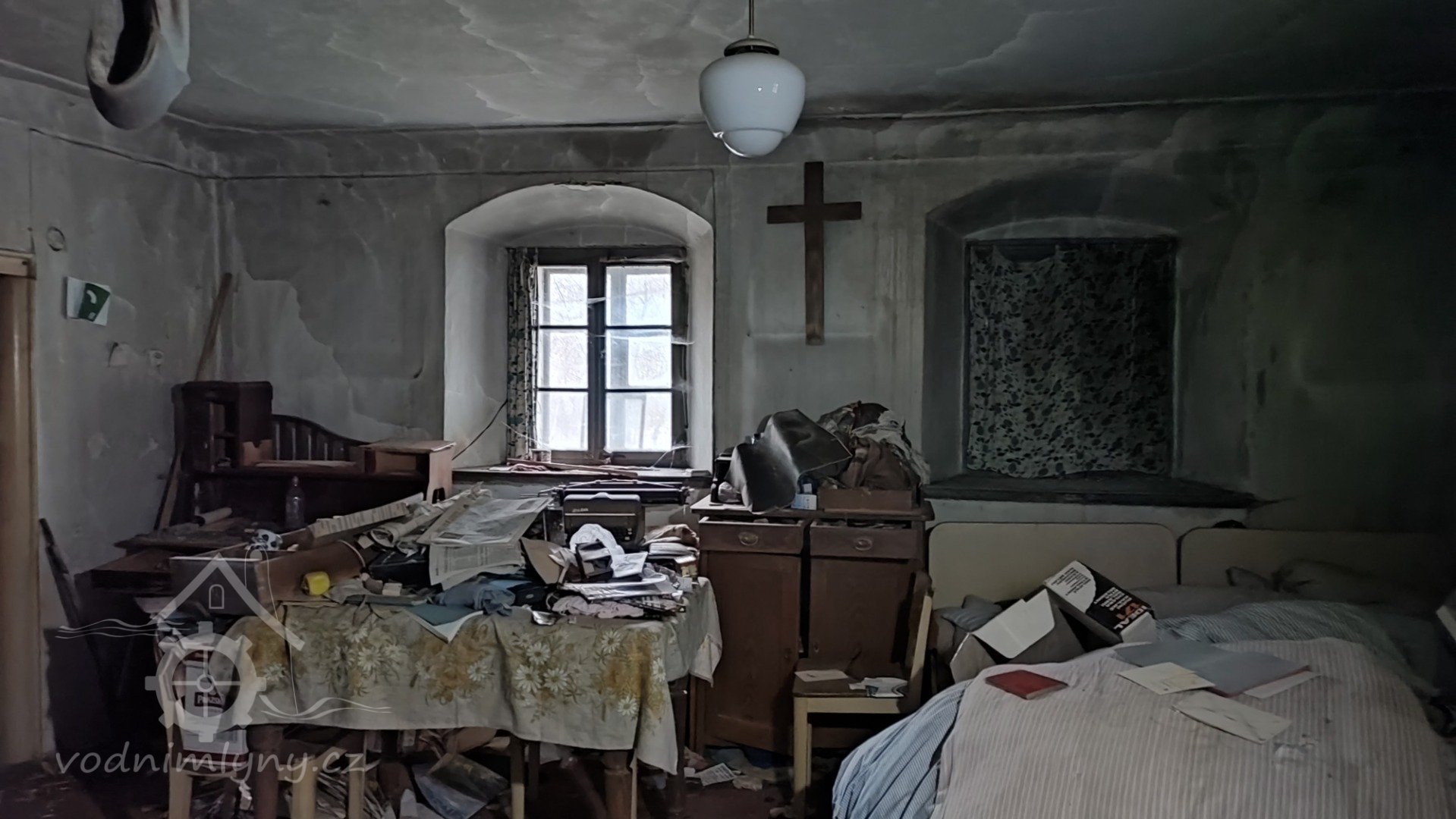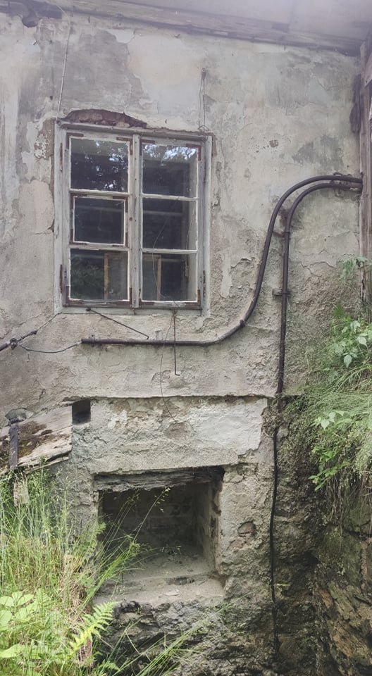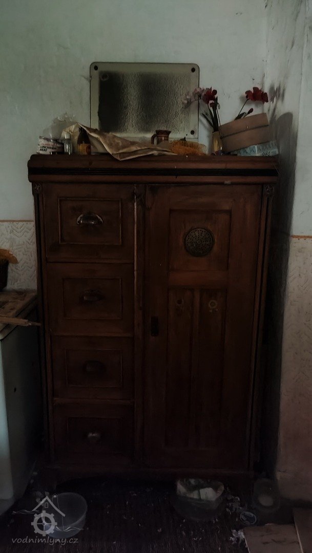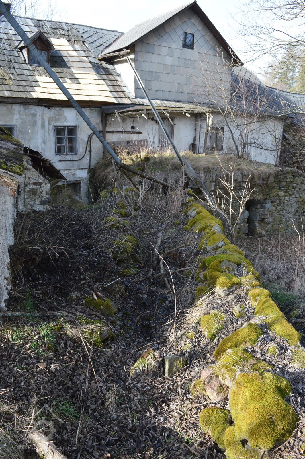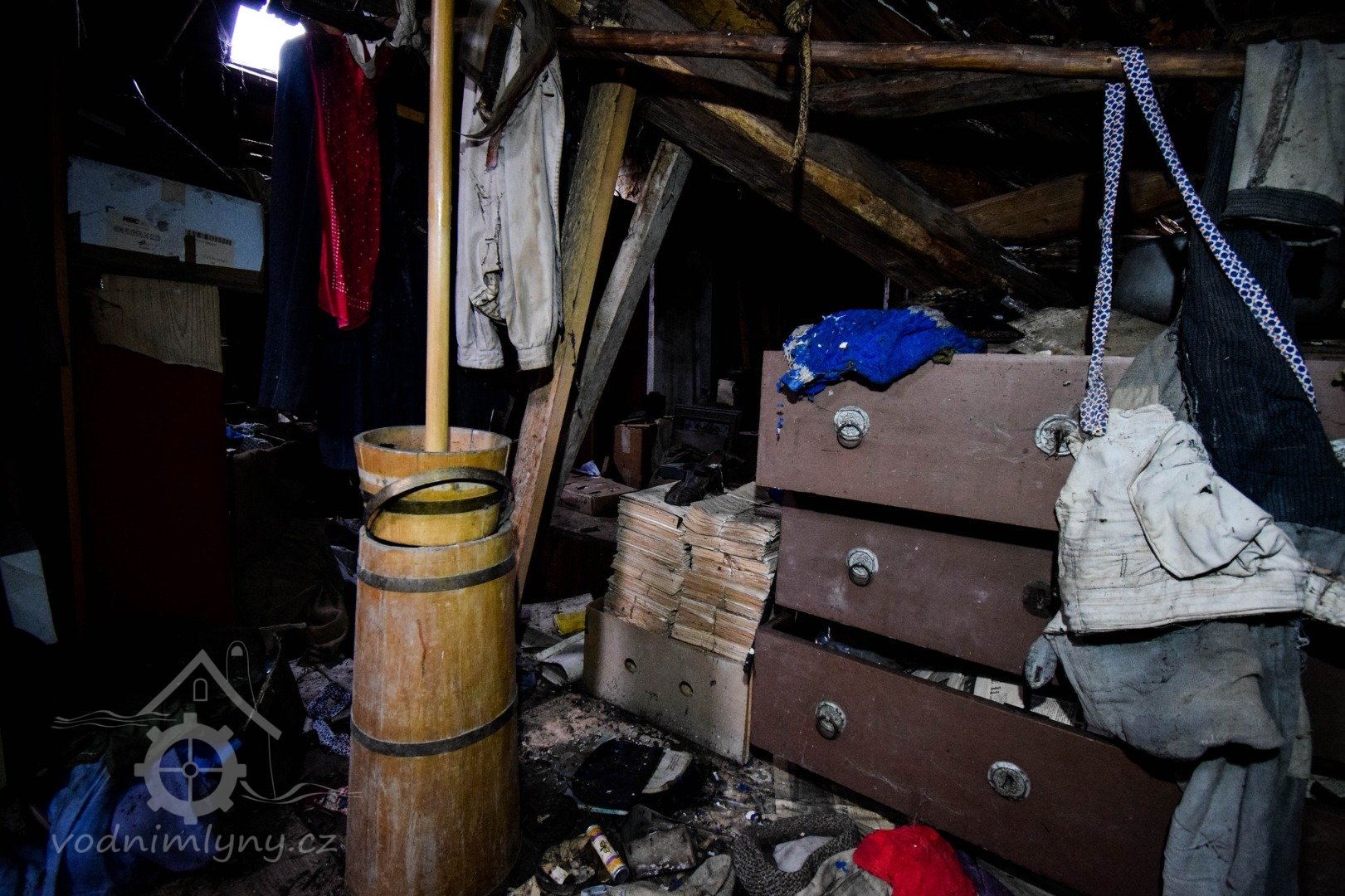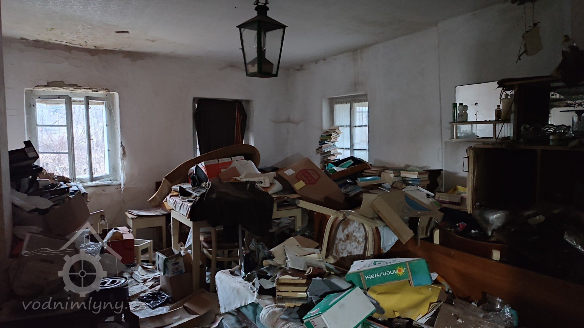Unikátně zachovalý mlýn a katr, bohužel značně teče do šindelové střechy nad obytnou částí a dům je volně přístupný oknem.