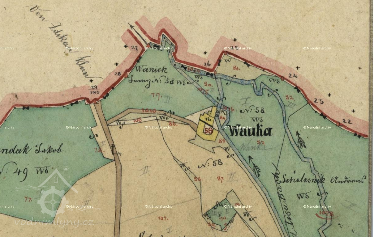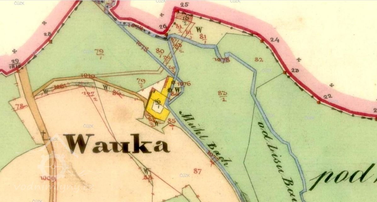 PopisV roce 1930 mlýn a pilu poháněla 2 kola na svrchní vodu, průtok 0.084 a 0.14 m3/s, spád 6.2 m, výkon 4.6 HP.