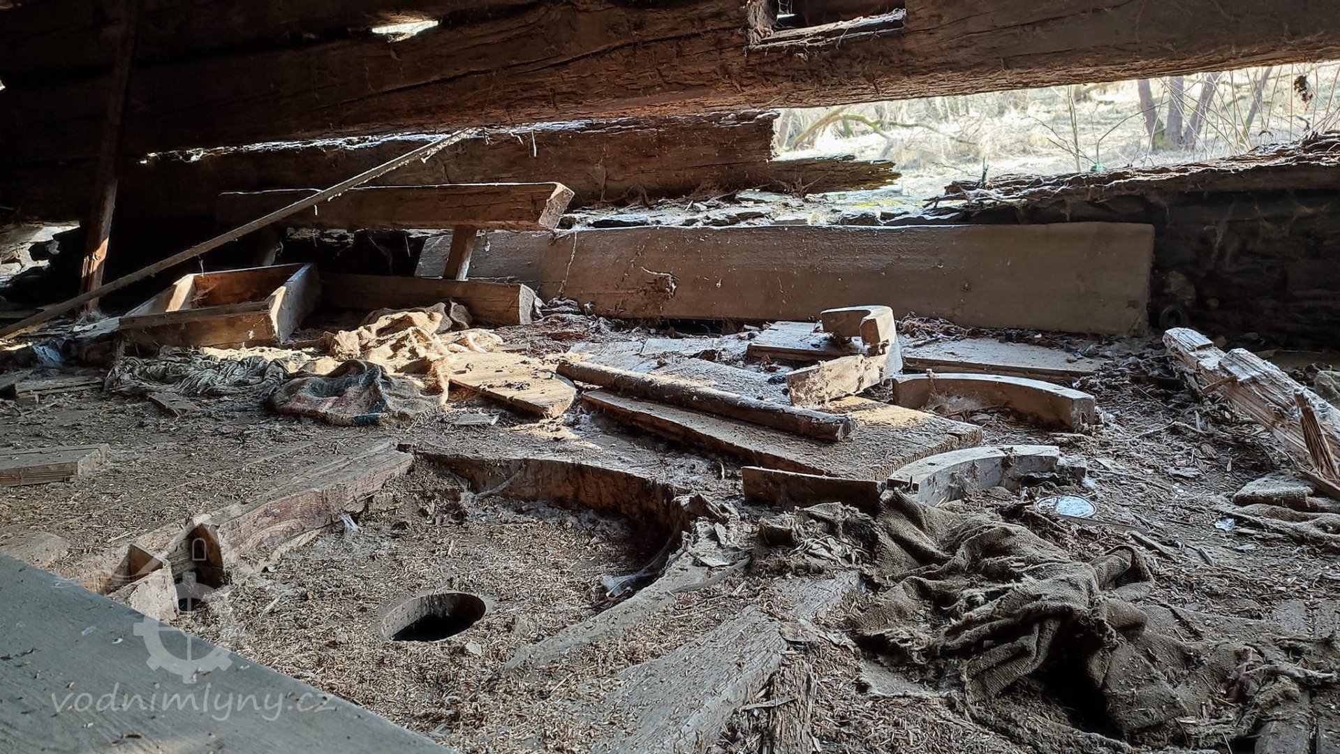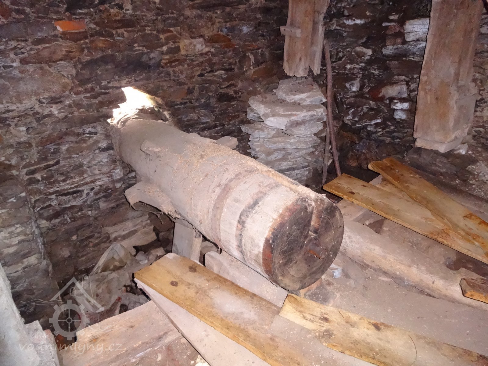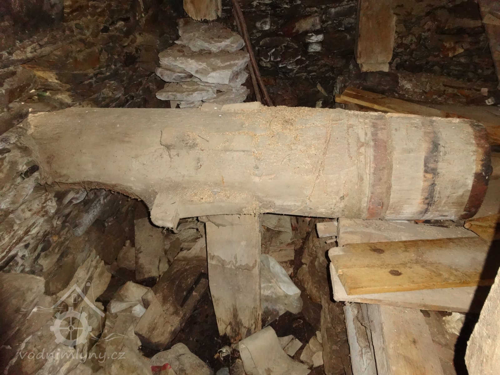 2.zápis – výměr z 17.4.1940; z vodní nádržky jde voda kamenným žlabem širokým 43 cm a vysokým 25 cm o délce 5,05 m; dále žlabem dřevěným širokým 23 cm, vysokým 20 cm a dlouhým 4,4 m jenž se před kolem rozšiřuje na 60x16 cm; vodní kolo průměr/šířka 3,95/0,74 m.