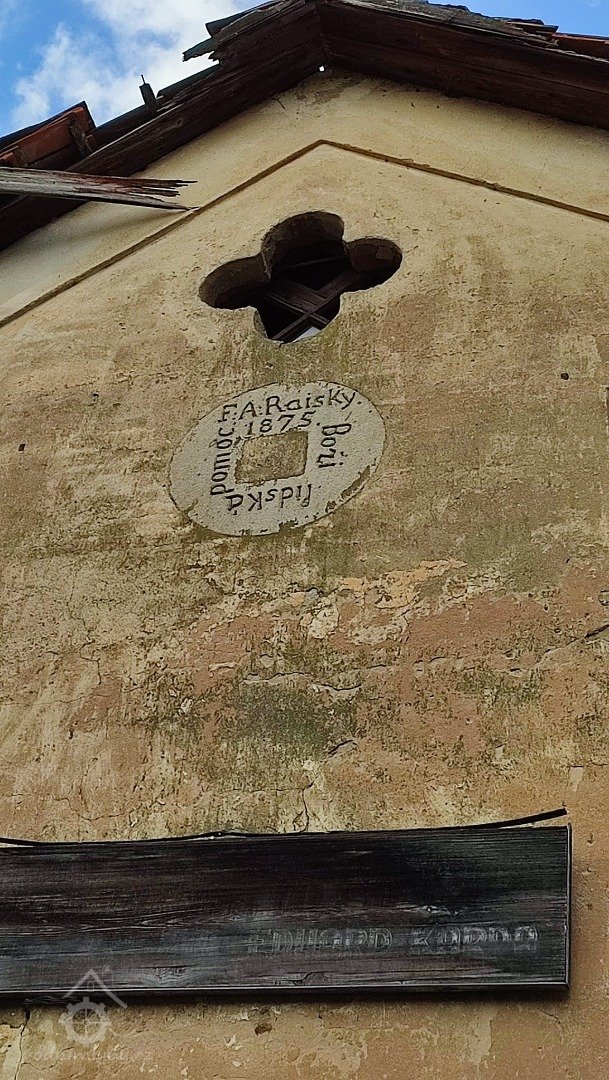 Po katastrofě nápis "F. A. Rajský boží lidská pomoc 1875"