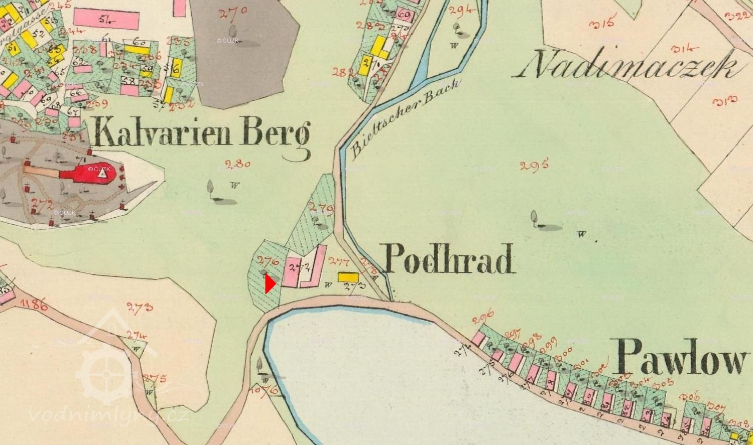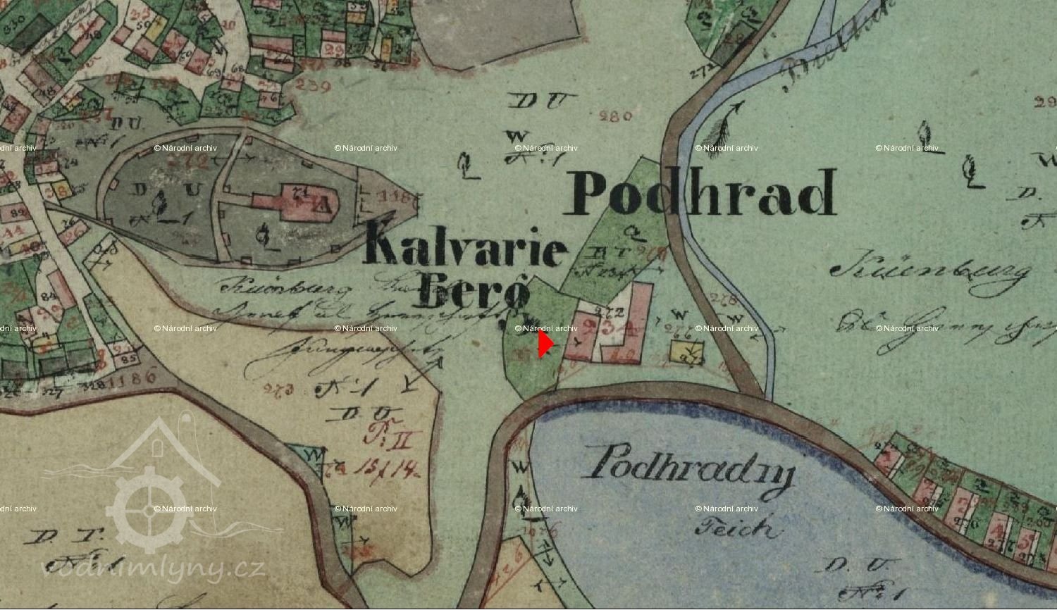 12.5.1852 jednání o vyvazení z roboty mezi Augustinem Rajským a Jindřichem Grossem, hosp. vrchnoředitelem hraběte Karla z Küenburgu, vlastníka mladovožického panství. Užívání vody z panského Podhradského rybníka prozatím z jednání vyloučeno až do vydání nového vodního zákona, zrušena poddanská  břemena řezání 6 klád, činže, laudemium z poslední koupě ad. celkem v hodnotě 55 zl. 11 1/2 kr., naproti tomu zrušeny závazky vrchnosti 1 prostřední buk, dovoz mlecích kamenů, placení erární daně ad. v celk. hodnotě 10 zl. 53 kr., tudíž zbývá částka 44 zl. 18 1/2 kr., takže zbývá 29 zl. 32 kr. jako roční dávka, kterou bude platit mimo náhradní jistinu 590 zl. 40 kr. splatnou jednou pro vždy. Mlynáři se ponechává právo využívat vodu z panského rybníka, správu hráze, stavidel a splavu bere na sebe vrchnost, mlynář ale povinen na hráz, stavidla a splav dohlížet, aby se při povodních zabránilo větším škodám,