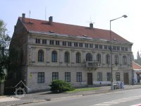 Hlavní západní průčelí jde směrem do ulice. Je členěno osmi okenními osami a ve středu jednou dveřní osou. U terénu začíná vystouplým zděným soklem, ve kterém jsou nízké široké otvory do sklepa. Okna přízemí jsou dřevěná, dvojitá, čtyřkřídlá, spodní křídla jsou dělená na polovinu. Omítka pod úrovní oken je hladká, mezi okny a nad nimi až k mohutné kordonové římse je členěna na vodorovné pruhy, které jsou okolo oken ukončeny svislou drážkou, která tvoří okolo oken rám, stejně jako okolo vstupních dveří. Před dveřmi jsou dva žulové stupně a omítané okrajové zídky.