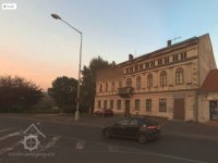 Chodba je rozdělena na tři stejně dlouhé časti. přední část je oddělena dvoukřídlými dřevěnými výplňovými, v horní části prosklenými dveřmi s vysokým nadsvětlíkem. Ve středu z chodby vybíhá na sever kamenné pravotočivé schodiště přibližné podkovovitého tvaru. Zábradlí má z litinových sloupků spojených dřevěným madlem. Schodiště nemá podesty a ústí přímo do chodby. Chodba má podlahu z keramických dlaždic. Strop je klenutý valenou klenbou se zrcadlem ve středu klenby, Zrcadlo je rozděleno na tři části klenebními pasy mezi jednotlivými díly chodby. Z chodby vedou v každé části po obou stranách jedny dveře. Tyto prostory slouží jako byty, na levé straně od vstupu vedou dveře do dvou místností za sebou. Na zadní navazuje zprava další místnost, z ní šly původně dveře do dalších dvou místností, které byly přístupné z konce chodby. Všech pět místnosti spolu se schody, které vystupují zleva z chodby, vyplňovalo severní část budovy. V prvních dvou místnostech s okny do ulice jsou stropy klenuté neckovými klenbami do I profilu. V přední místnosti jde 5 polí kolmo na průčelí, v zadní 4 pole rovnoběžně s ulicí. V této místnosti bylo zazděno okno do štítu i spojovací dveře do další místnosti se středním štítovým oknem. Stropy všech místností kromě prvých dvou jsou ploché, podlahy jsou prkenné, někde nahrazené dřevotřískami a PVC. Z pravé strano chodby vedou nejprve dveře do dvou propojených místností vedle sebe. Prvá místnost má rovněž vstup z chodby, má plochý strop a je bez oken. V první místnosti s okny do ulice je opět neckový strop kolmý k fasádě. Podlahy jsou prkenné. Poslední dveře na pravé straně chodby vedou do jedné místnosti s plochým stropem a oknem do dvora. Druhé okno z této místnosti bylo zazděno. Podlaha je prkenná. Zbývající tři místnosti jižní strany slouží agitačnímu středisku. Dovnitř jsem se nedostal. Místnosti jsou pravděpodobně průchozí, v patře jižního přístavku mají nové PVC. Přední místnost s oknem do ulice má opět strop z neckových kleneb rovnoběžných s uliční fasádou. Další místnost nemá okna. Poslední má dvě nová okna do dvora. Poslední prostor přízemí je sklad v jižním přístavku, přístupný plechovými dveřmi z ulice. Podlahu i strop má prkenný. Patro je řešeno podobně. Schody ústí opět na chodbu, její třetina u ulice je opět oddělena stejnými dveřmi, nad ulici je z chodby přístupný balkón. Z druhé strany vede na pavlač. Strop je zajímavý. kasetový, vytvořený pravděpodobně z I profilů kolmých na chodbu, jejichž pásníce vystupují nad vnitřní omítku, pásy rovnoběžné s chodbou jsou pravděpodobně jen v omítce. Severní část patra byla původně stejná jako v přízemí. Je v ní opět pět místností okolo schodiště, které byly rozděleny na dva byty. První byt má dvě místnosti do ulice a třetí ve středu severního štítu. Na druhý byt zbyly dvě místnosti s okny do dvora. Do bytu se vstupuje z pavlače do místnosti u štítu, která byla rozdělena na malou chodbu a vlastní místnost, podlahy jsou prkenně, stropy ploché, dveře dřevěné výplňové do dřevěných zárubní. Jižní část patra obsahuje čtyři místnosti, vždy dvě a dvě přístupné dvoukřídlými dveřmi z krajních částí chodby, mezi předními místnostmi jsou obezděné dvojramenné dřevěné schody na půdu, přístupné ze střední části chodby rovněž dvoukřídlými dveřmi. Podlahy místností jsou opět dřevěné, stropy ploché.