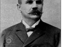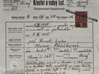 Místo posledního okna na pravé straně vedou další dvoukřídlé dřevěné, v horní části prosklené dveře do původního krámu. Dnes je zde agitační středisko. Nad vstupními dveřmi z průčelí vystupuje balkón, nesený čtyřmi konzolami, zdobenými volutami, zábradlí balkonu je z kamenných kuželek, rohové sloupky jsou jednodušší, kvádrové, madlo je rovněž kamenné kryté plechem. Okna patra jsou v dolní části stojná jako do přízemí. Shora na ně navozuje půlkruhová část členěná půlkruhem ve středu a dále dvěma paprskovitě navazujícími laťkami. Okolo oken jsou šambrány. Na balkon vedou s chodby patra dvoukřídlé dřevěné dveře s rovněž půlkruhovým nadsvětlíkem. Okna jsou rámována jednoduchými plochými pilastry, které jdou mezi kordonovými římsami nad přízemím a nad patrem. Na krajích u štítů je omítka zdobená nárožní rustikou.