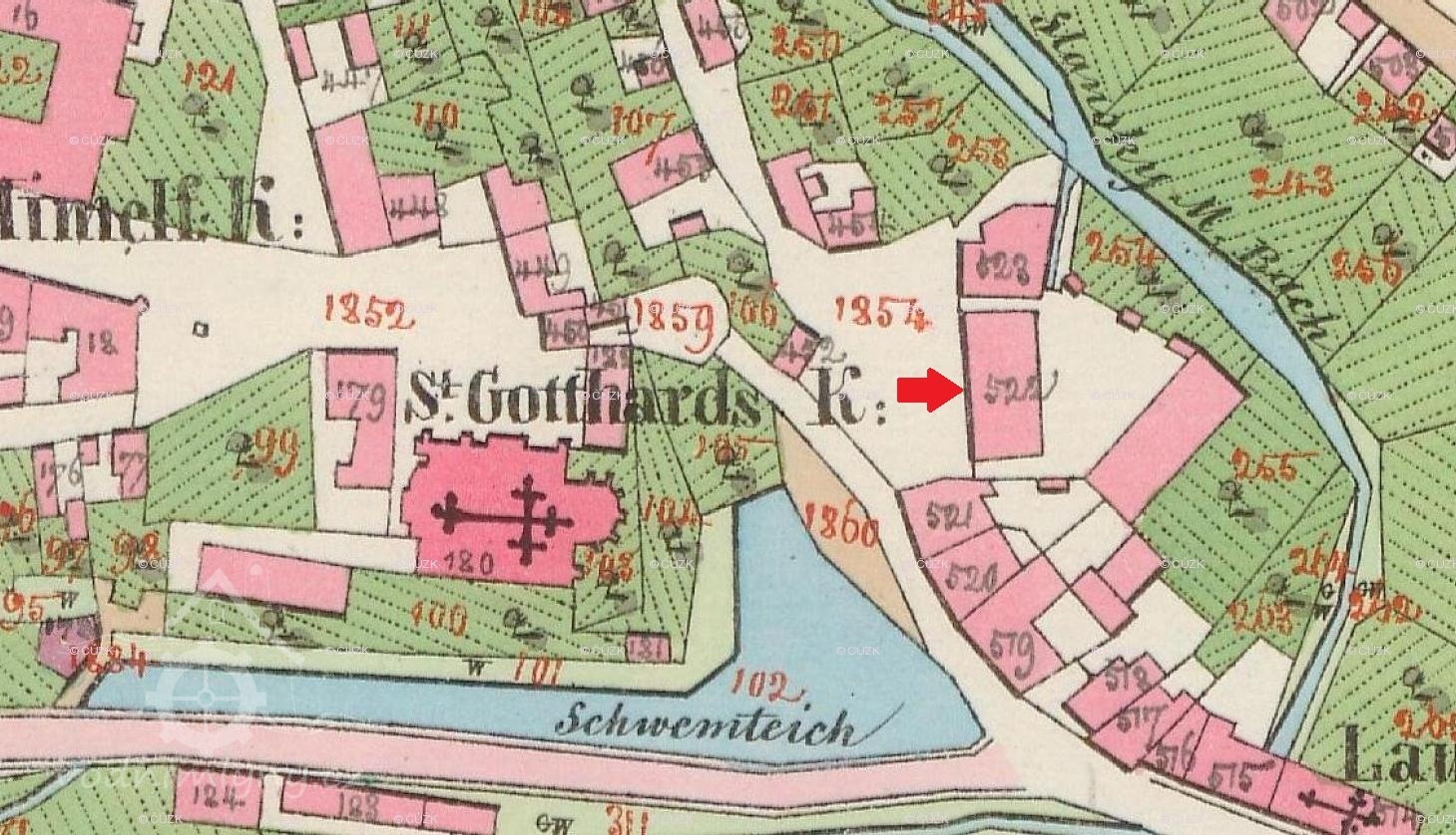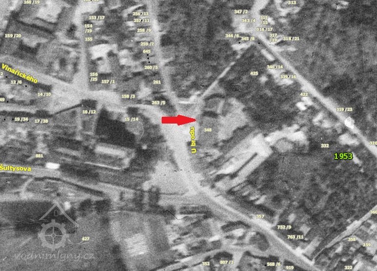 Dům čp. 348 je jediným pozůstatkem renesančního mlýna, přestavěného v klasicismu a po požáru v r. 1869. Architektonicky hodnotné je též neorenesanční průčelí.