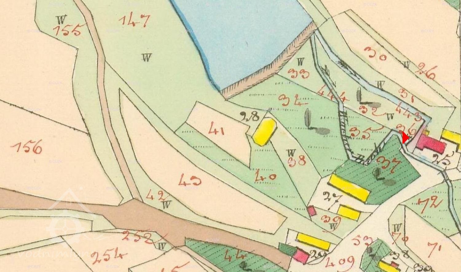 2. zápis: Výměr z 12.8.1940 – nové zjištění vodního díla. Jedno vodní kolo o průměru 3,9 m a šířce 1,29 m na svrchní vodu o výkonu 8,8, HP