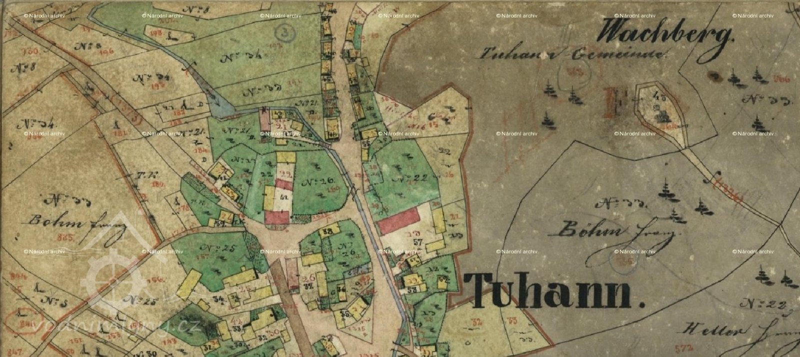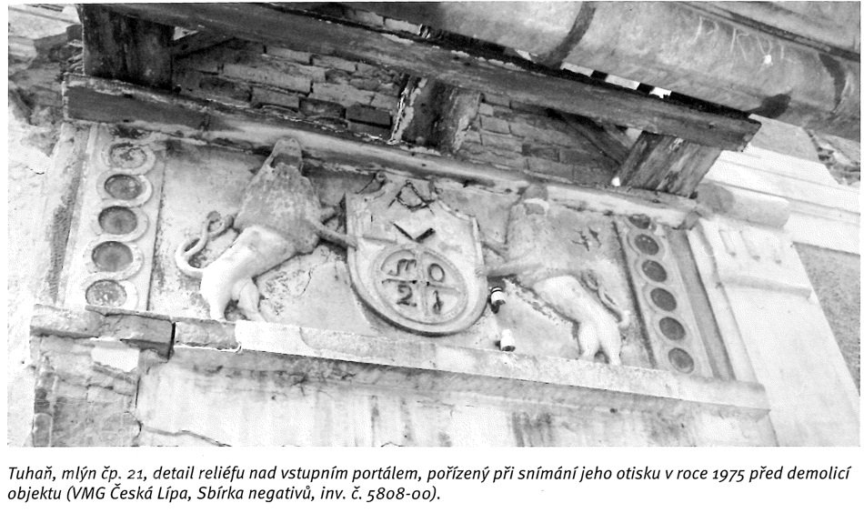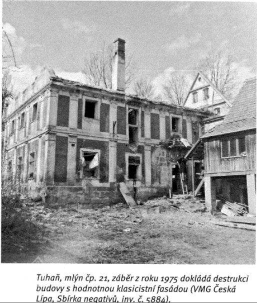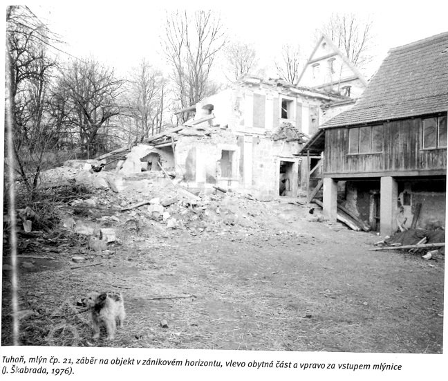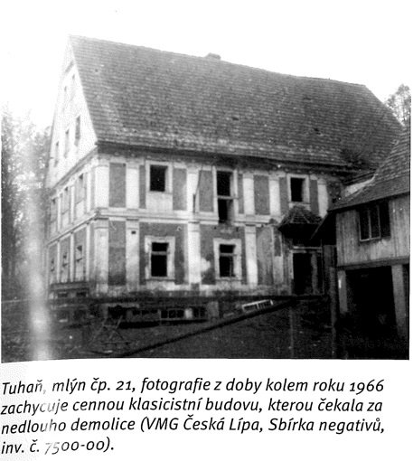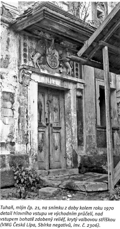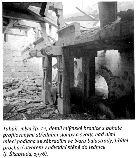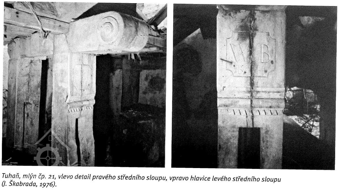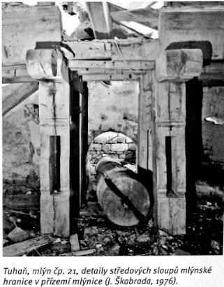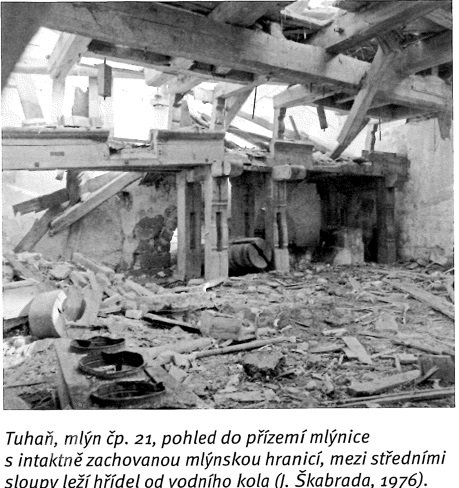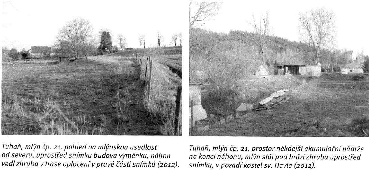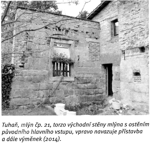 Přimlýněny Tuhaň, Tuhanec a Domašice. V invenáři 4 mlýnská železa , pytlík, mlynářské míry (věrtel a achtl), Mählkasten a Metzkasten. Roční plat ze mlýna 70 zl., náhrada za vykrmení vepřů 15 zl. Vrchnost hradí mlecí kameny - běhoun v ceně 1 zl. 30 kr., ležák za 45 kr., zajistí jejich bezplatný dovoz robotníky a věnuje ročně fůru bukového dřeva na opravy vantrok a výměnu hřídele.