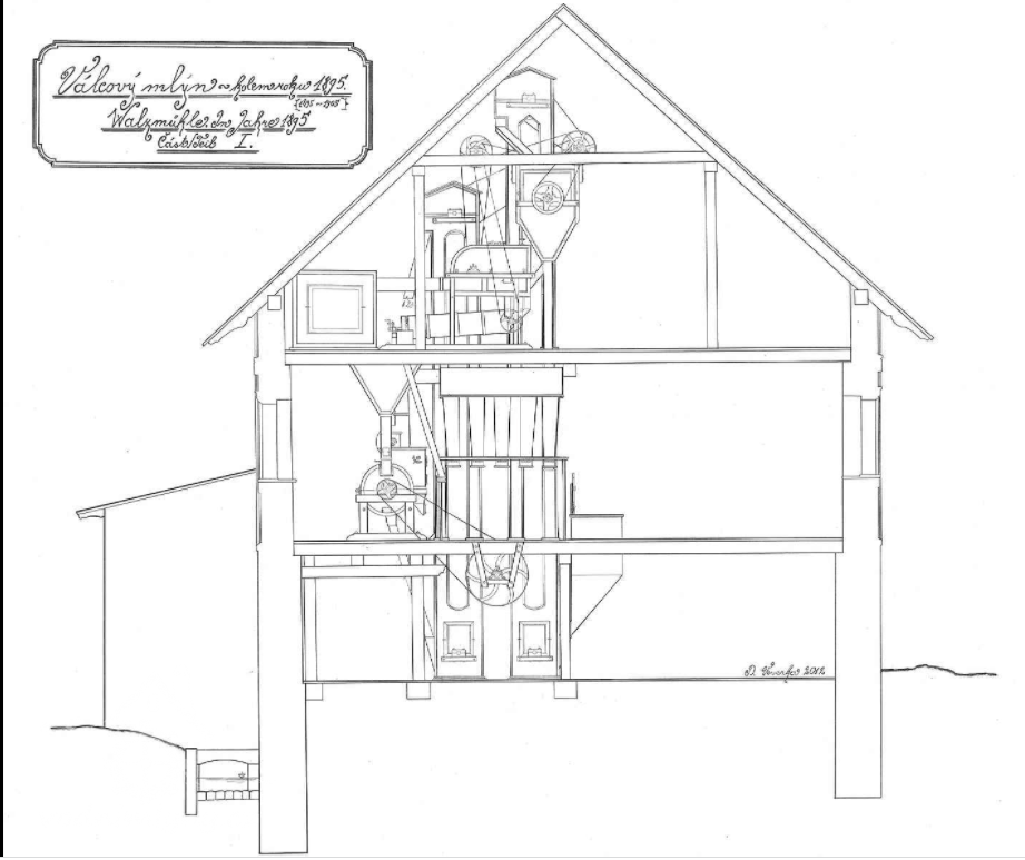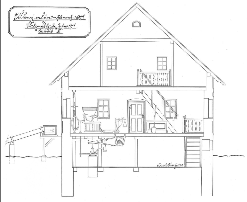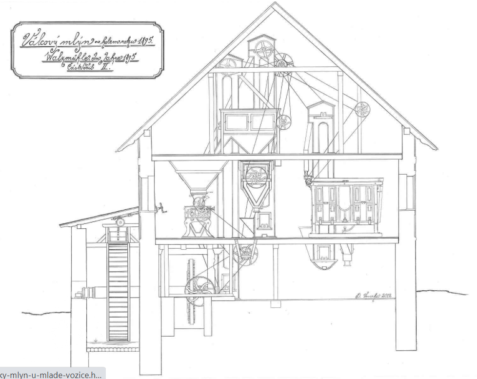 Popis1930: 3 kola na svrchní vodu, hltnost 0,216 m3/s, spád 4,8 m, výkon 9 HP