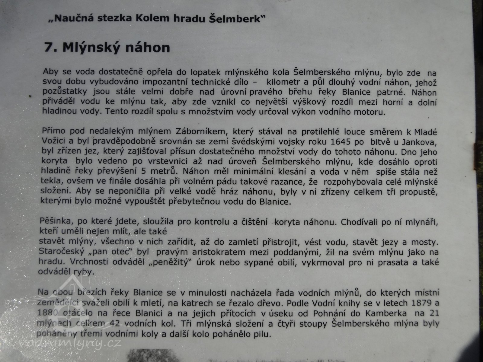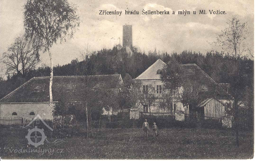 Poznamenání co obilí z panství vožického od mlynářů a sedláků za měřičné vycházeti má od svatého Jiří léta 1620 počínajíc: Ze mlejna še(l)mberskýho mlynář Buza, který od 17. Juny 1620 najímá, dává žita 65 štrychů a za krmení vepřů - 7kop grošů a má do dvorů panských darmo mlýti, ale z sedláků žádnému nic bez měřičného. Zápis tento učiněn za urozeného pána pana Jana Bernarta Fünfkyrchera na zámku Fünfkyrchu, Mladé Wožiczy a Šembercze jenž vlastnil Šelmberský mlýn již od roku 1603 (J. Kubále)