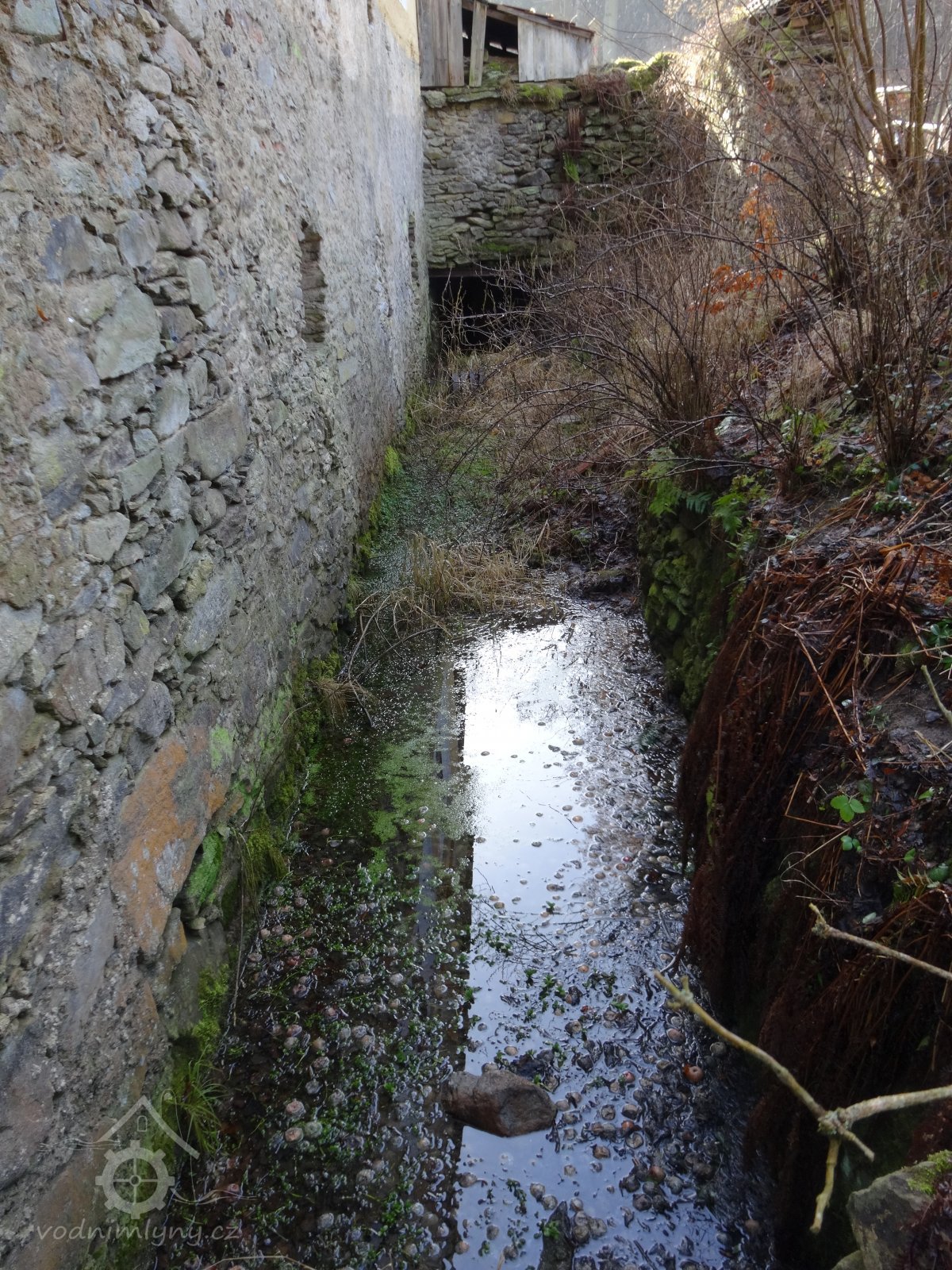Voda přicházela poměrně dlouhým náhonem od jezu na řece Blanici, okolo něhož nyní vede hezká naučná a turistická stezka. Před mlýnem byla malá nádržka z níž pak šla voda pravděpodobně na vantroky a mlýnská kola. Odpadním kanálem pak byla odváděna zpět do řeky Blanice.