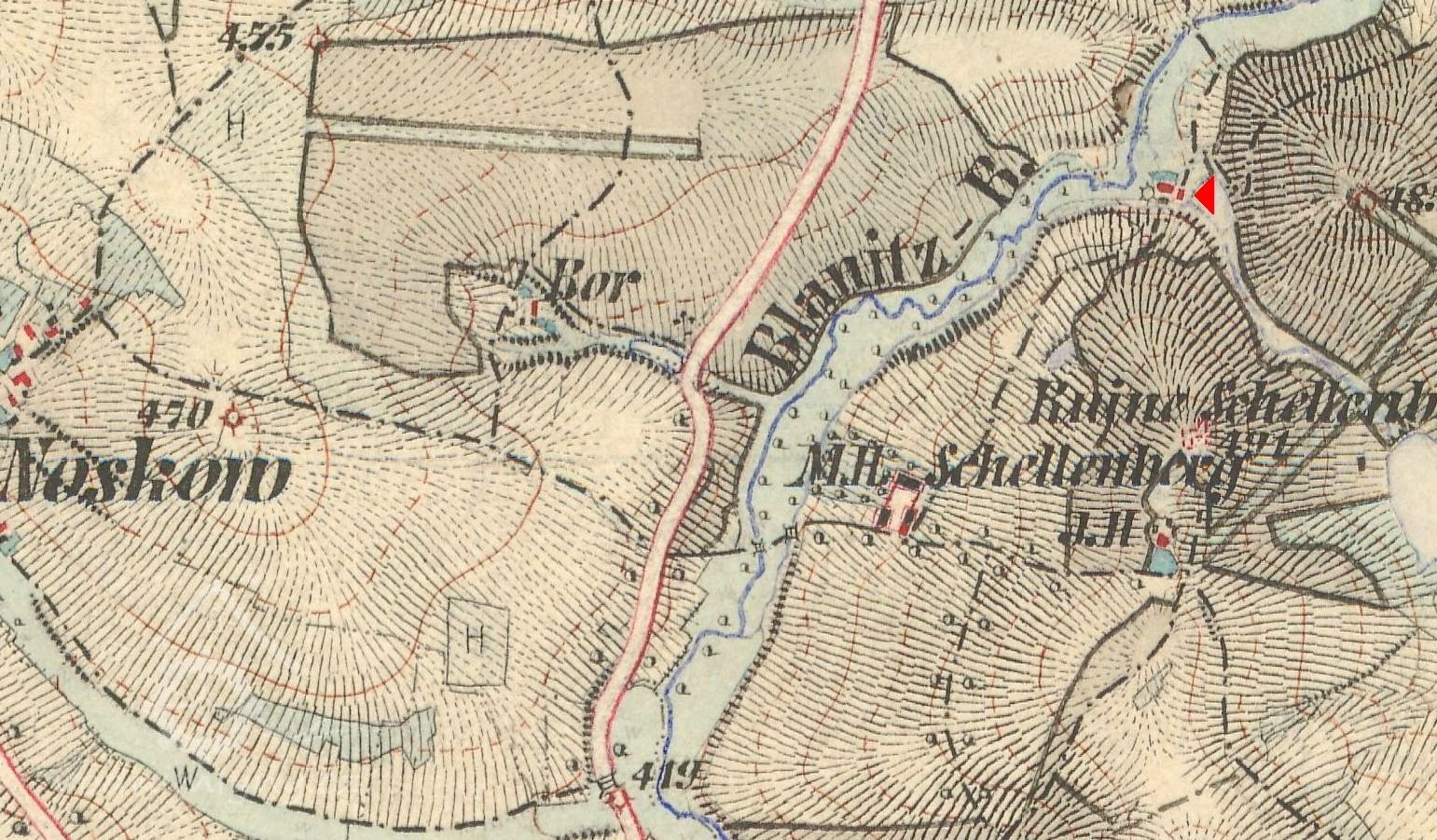 Mlýn s pilou Šelmberský čp.1. Držitel Karel Neudörfl.