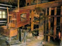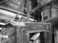 Vybavení části mlýnice (zleva dole) váha, náhradní kypřice, náhradní čep a čisticí mlýnek (fofr), 1999, © Jitka Svobodová, (Prvky na obrázku: váha)