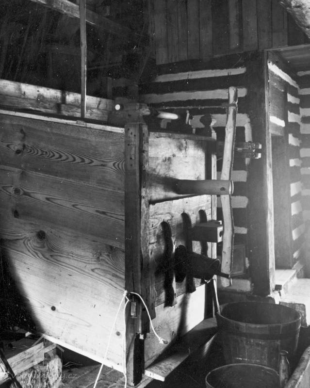 Stoupa na drcení kůry přenesená z Klešic, 1985, © Luděk Štěpán