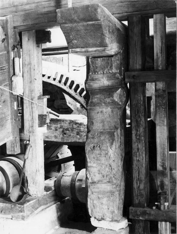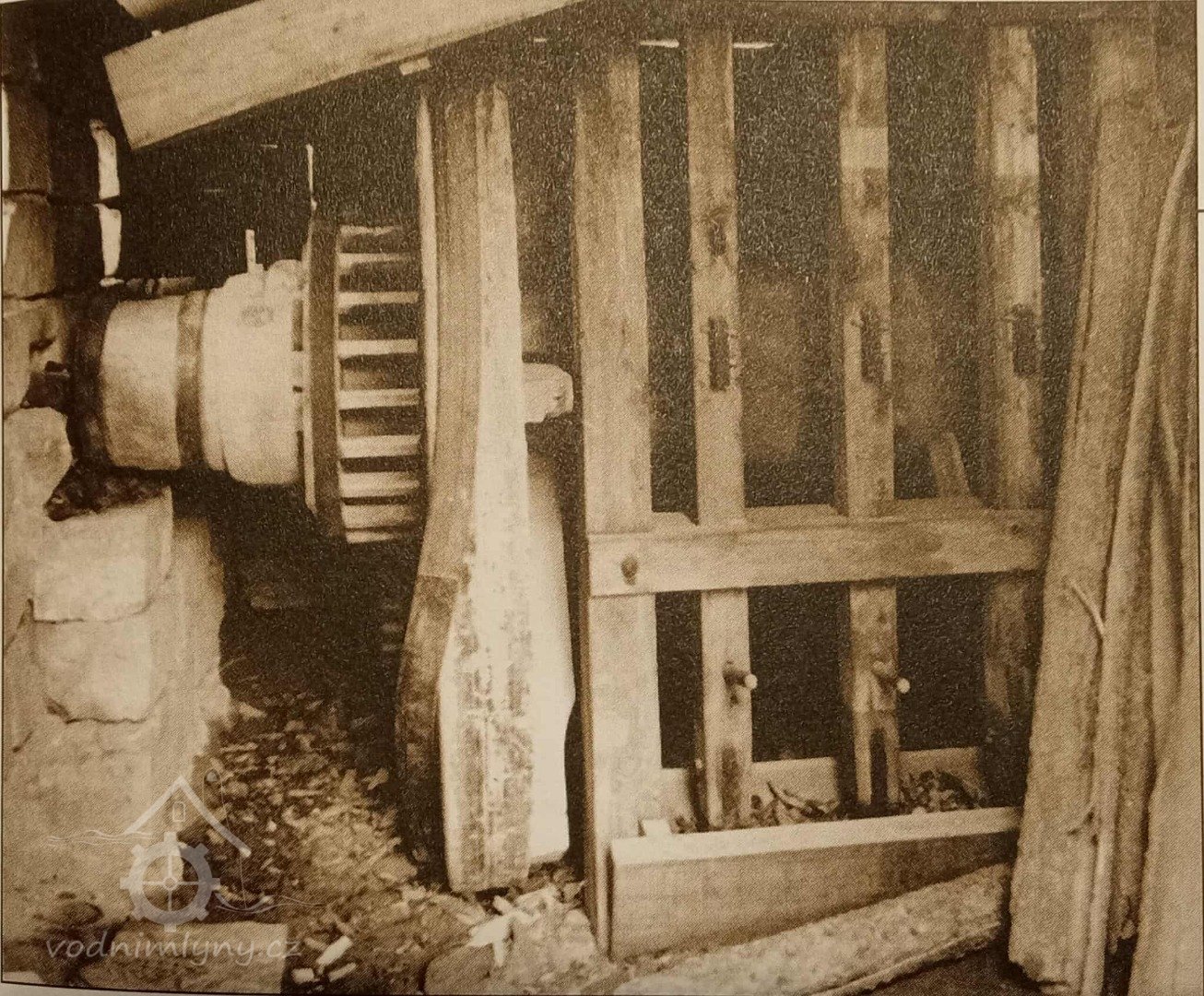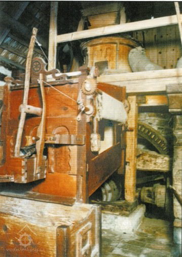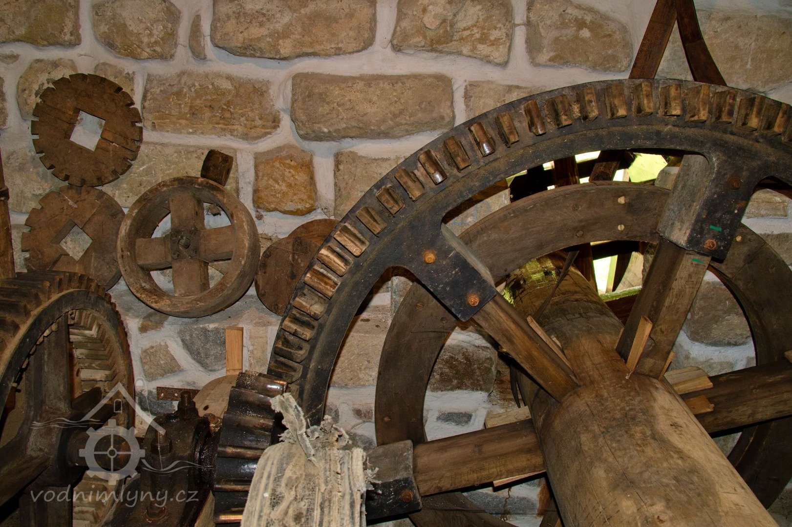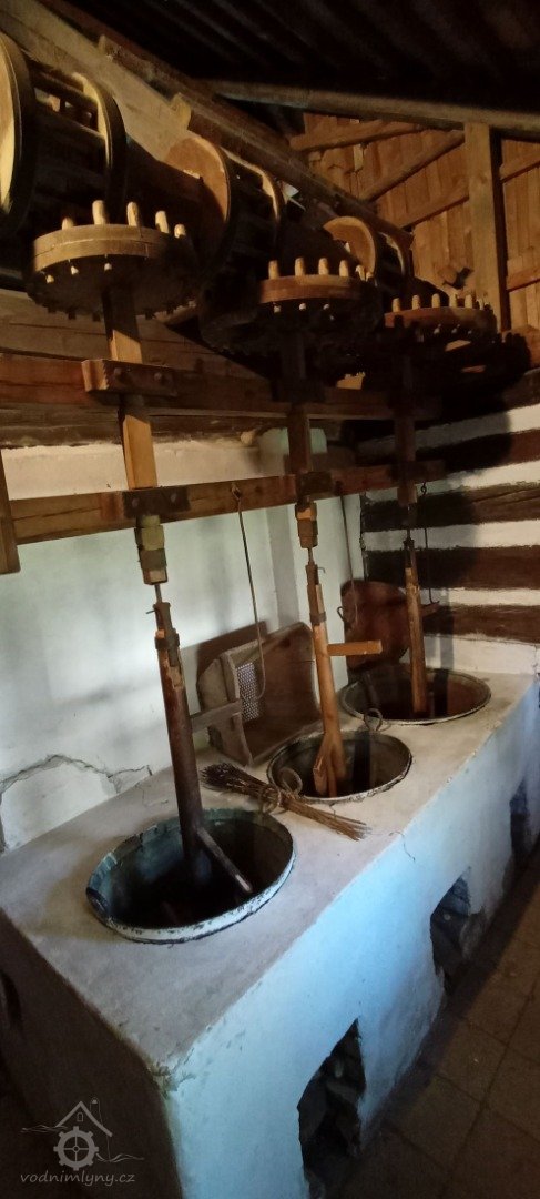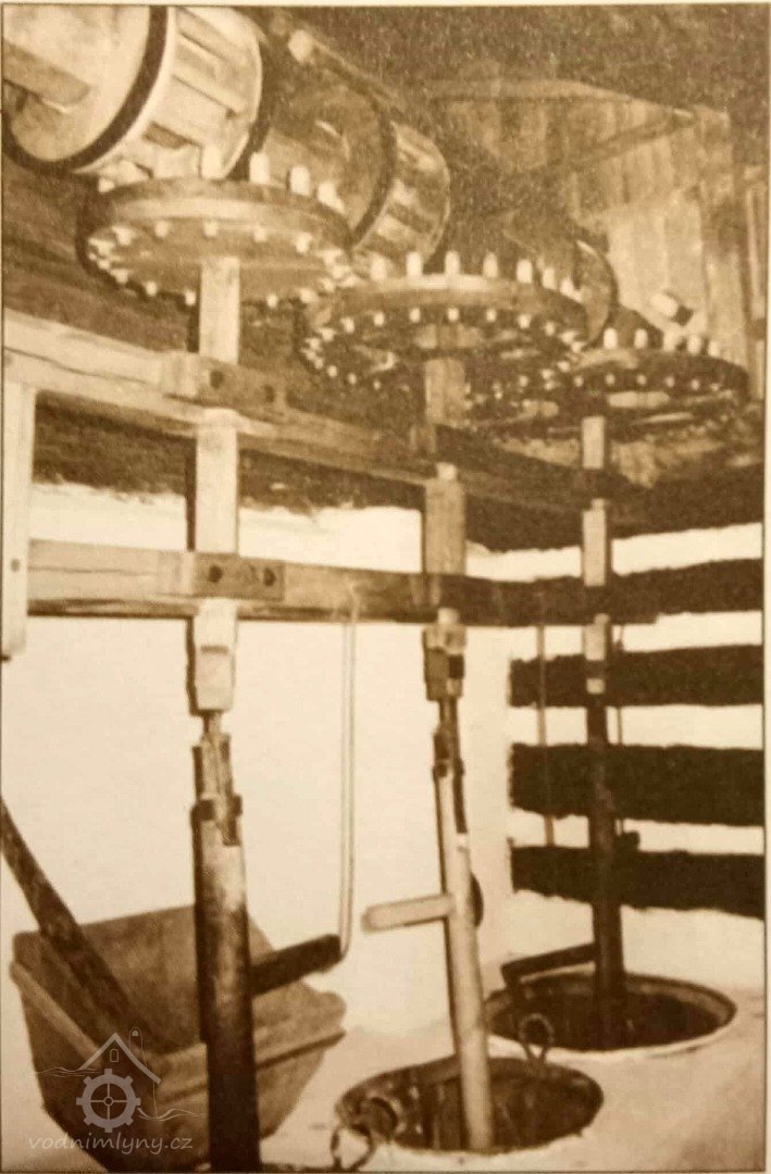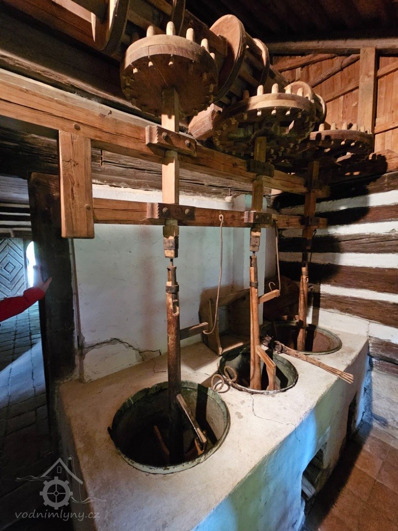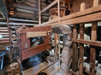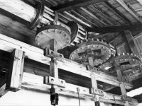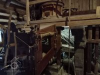 Mlýnice, 01 2024, © Vabi 82, (Prvky na obrázku: transmise, řemenice, převody - paleční kola, pastorky a cévníky (řemeslný výrobek))