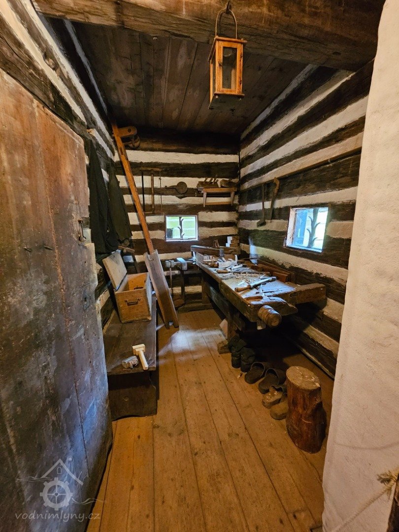 Mlýnice, 05 2024, © Milhaus, (Prvky na obrázku: kamenné složení (šrotovací, mlecí), násypný koš, moučnice, moučná truhla, žejbro)