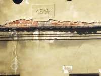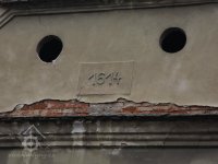 Letopočet ve východním štítu obytné budovy, 2013, © Šimek, (Prvky na obrázku: epigrafické památky (nápisy, datování aj.), plastická omítková výzdoba fasád a štítů)