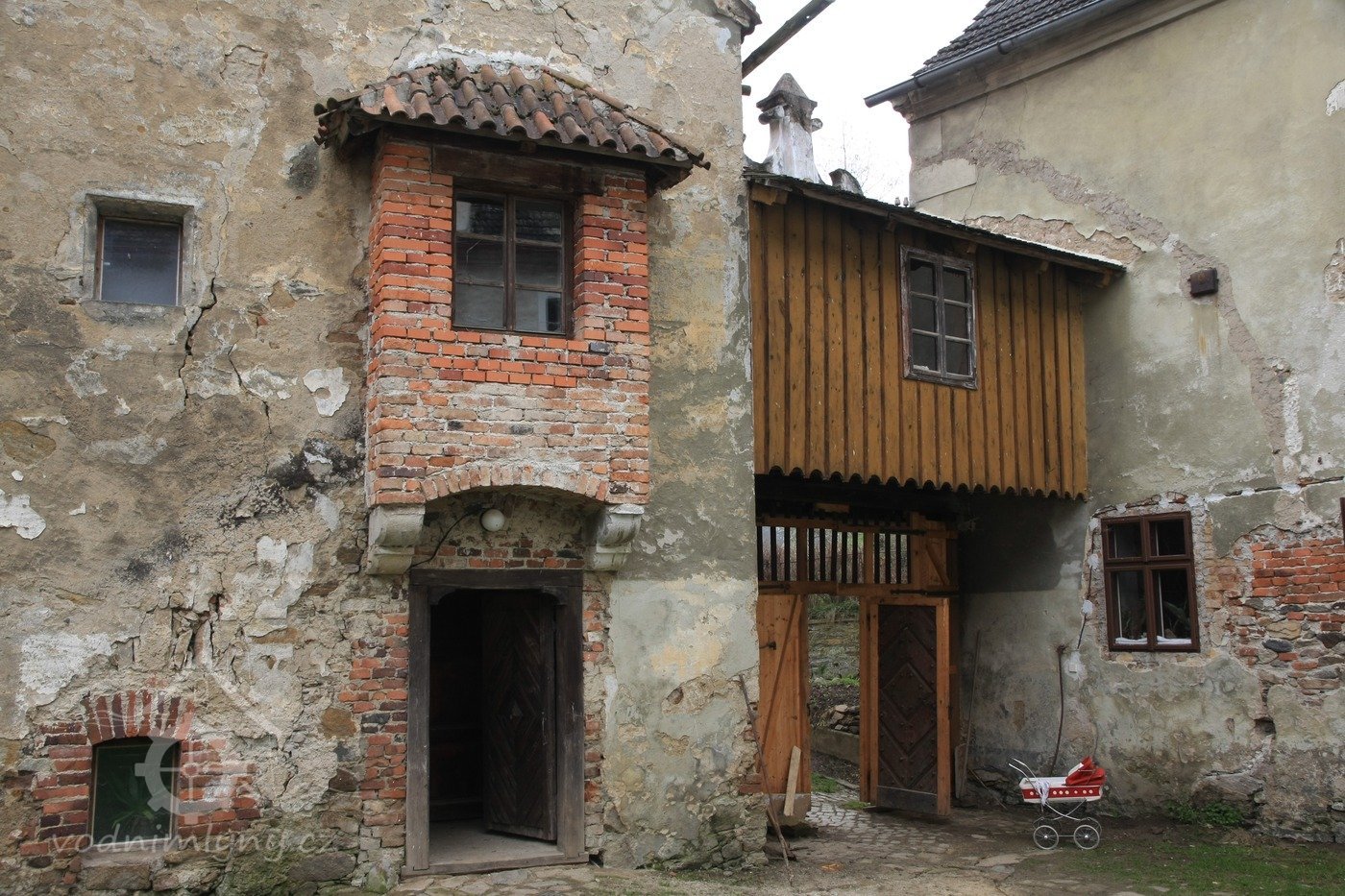 Chodba nad hlavní vstupní branou spojující obytnou část a sýpku, 2013, © Šimek, (Prvky na obrázku: vrata, brána)