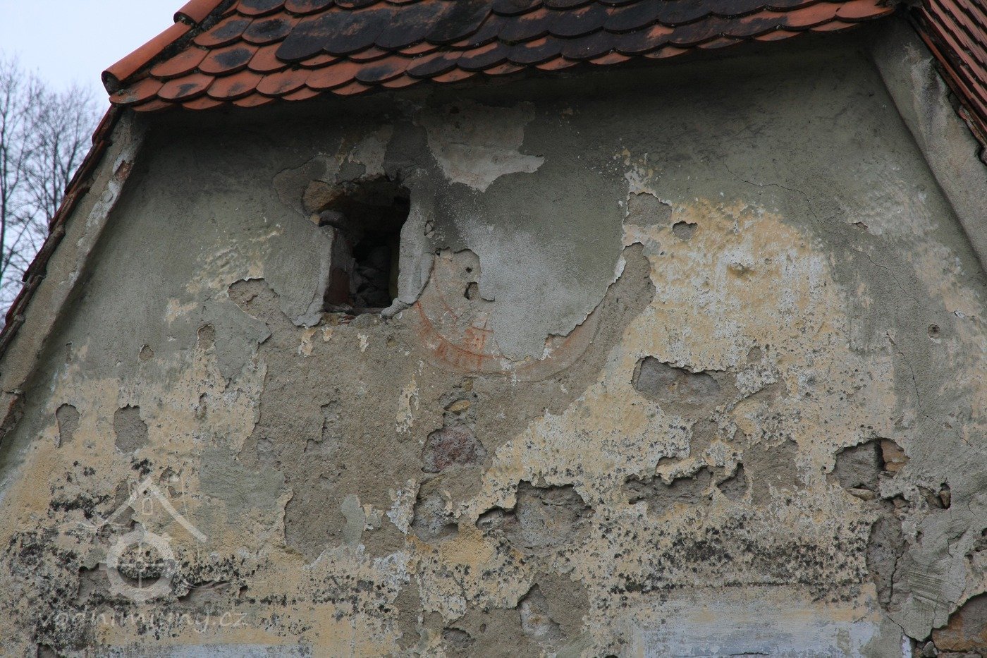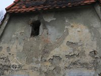 Sluneční hodiny v severozápadním štítu sýpky (bylo na ně krásně vidět ze mlýna), 2013, © Šimek, (Prvky na obrázku: malovaná výzdoba fasád a štítů)