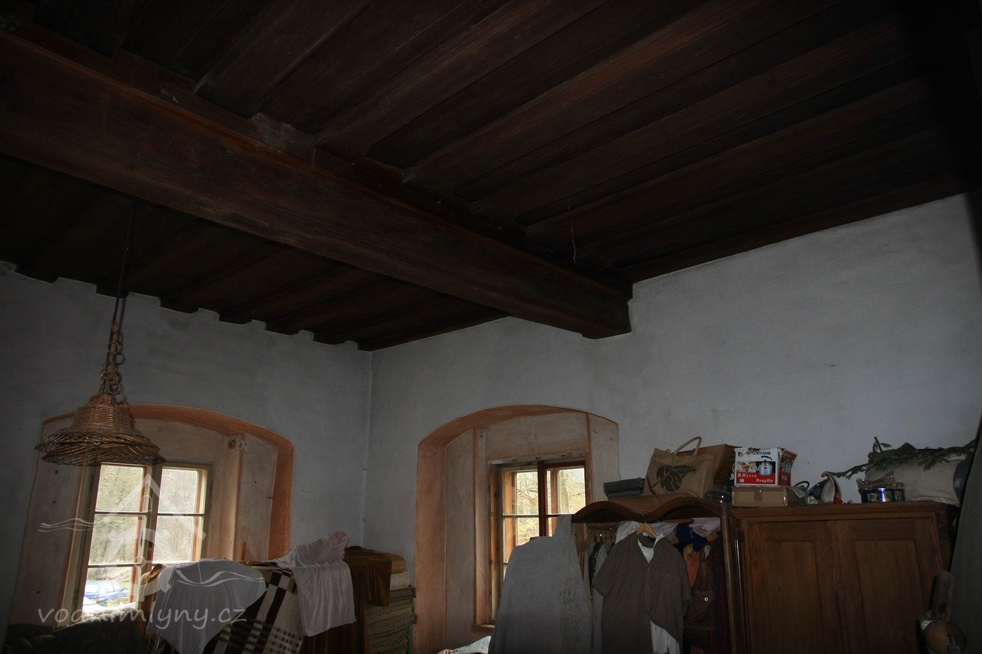 Trámový strop v tzv. sálu, místnost nad kuchyní, 2013, © Šimek, (Prvky na obrázku: trámový strop)