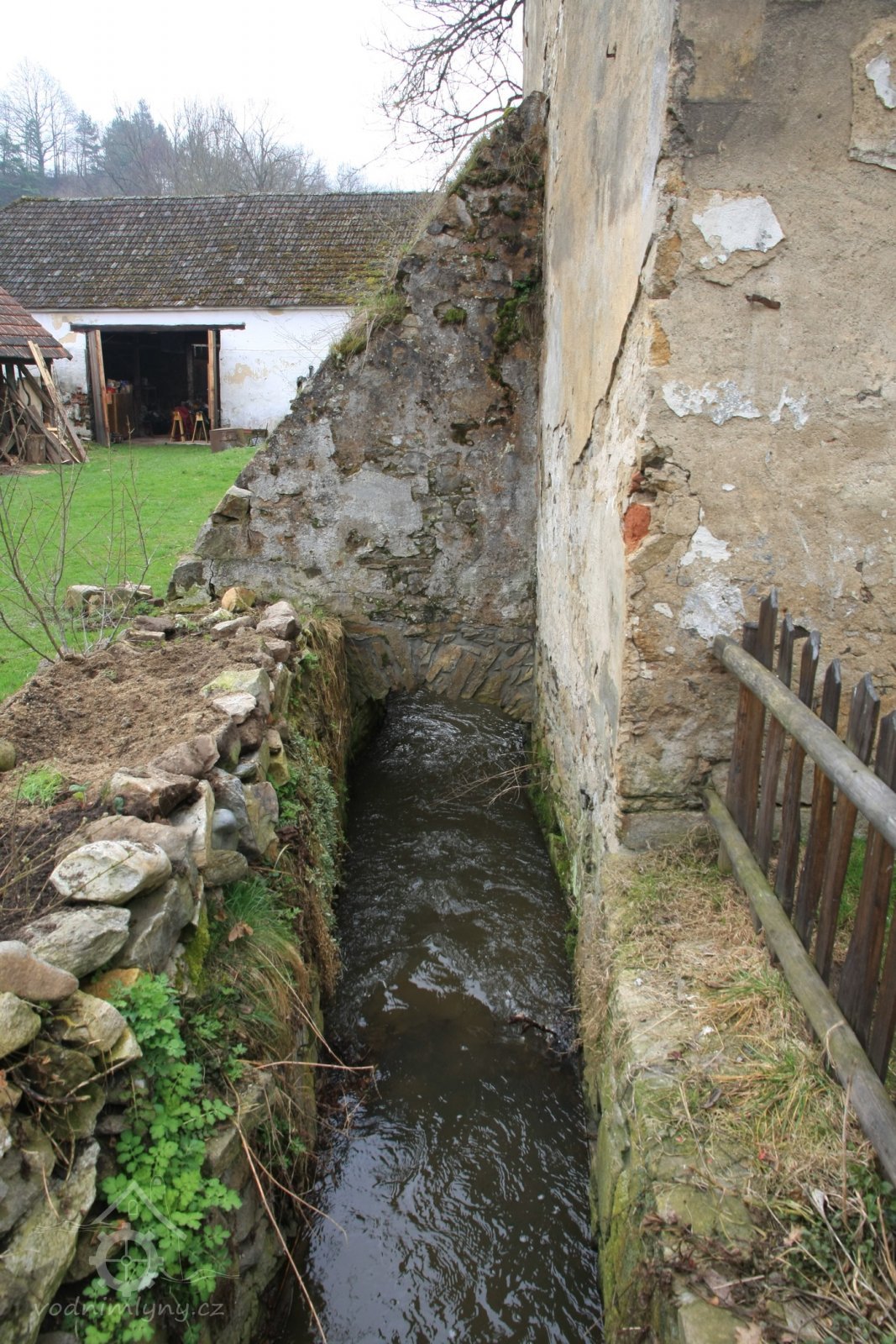 Chybějící vantrok mezi koncem náhonu a turbínovou kašnou, 2013, © Šimek, (Prvky na obrázku: náhon)
