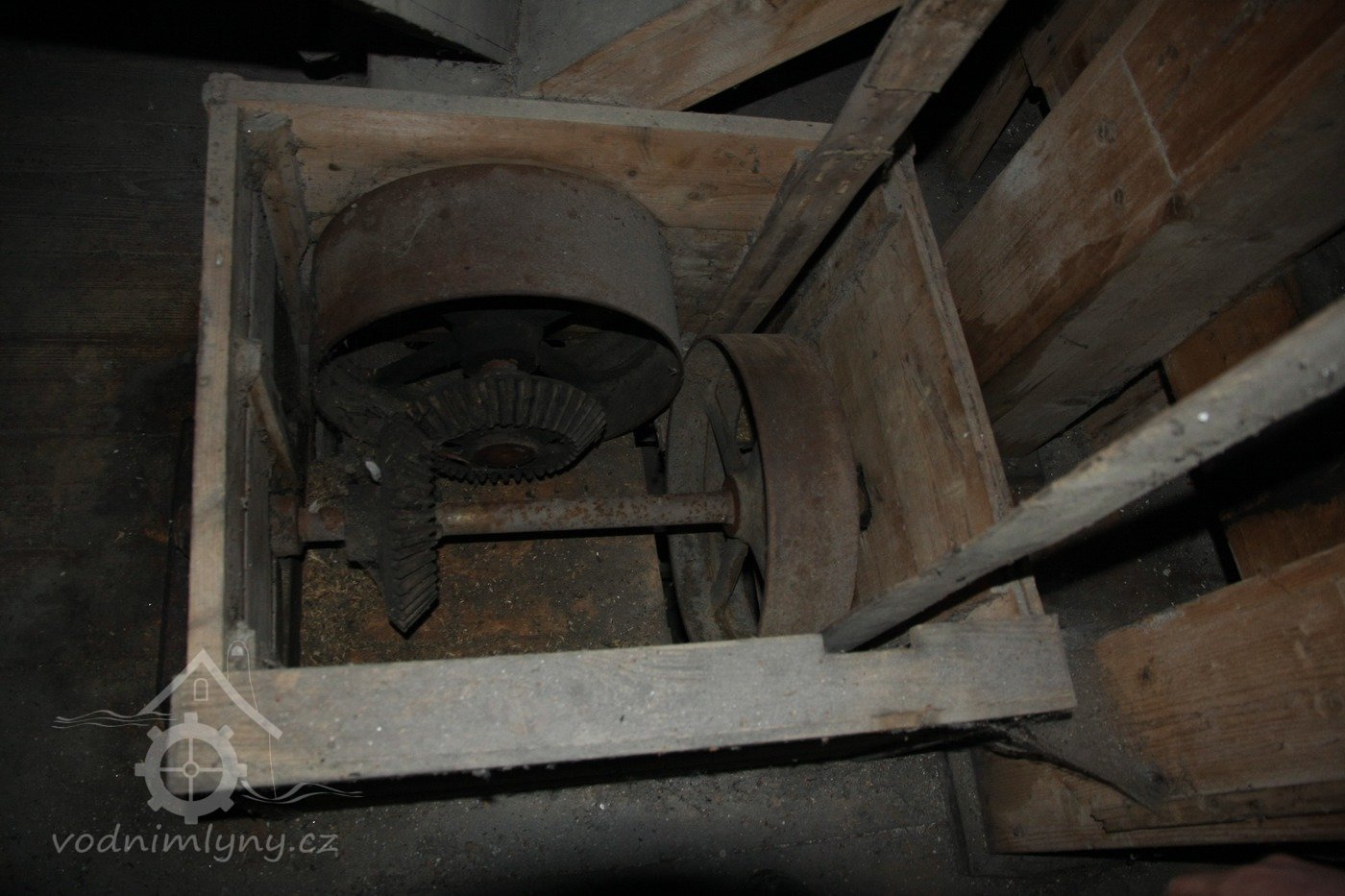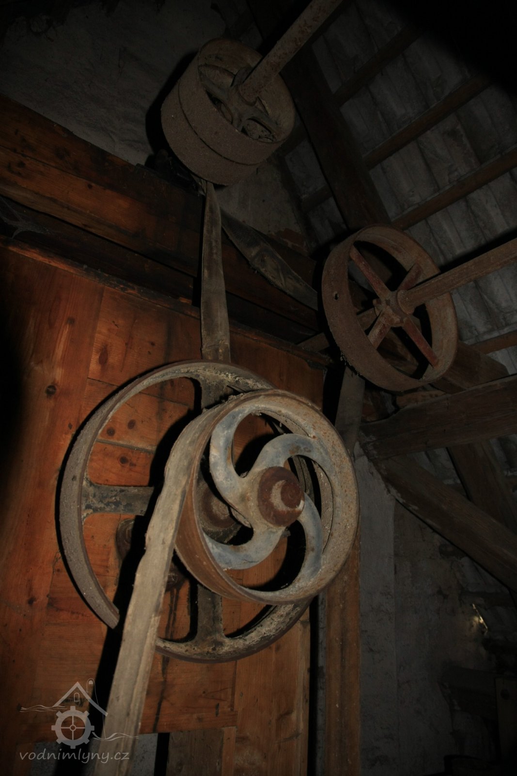 Řemenice v podstřeší, 2013, © Šimek, (Prvky na obrázku: transmise, řemenice, převody)