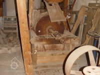 Dřevěná řemenice, pravděpodobně domácí výroba, 2013, © Šimek, (Prvky na obrázku: transmise, řemenice, převody)