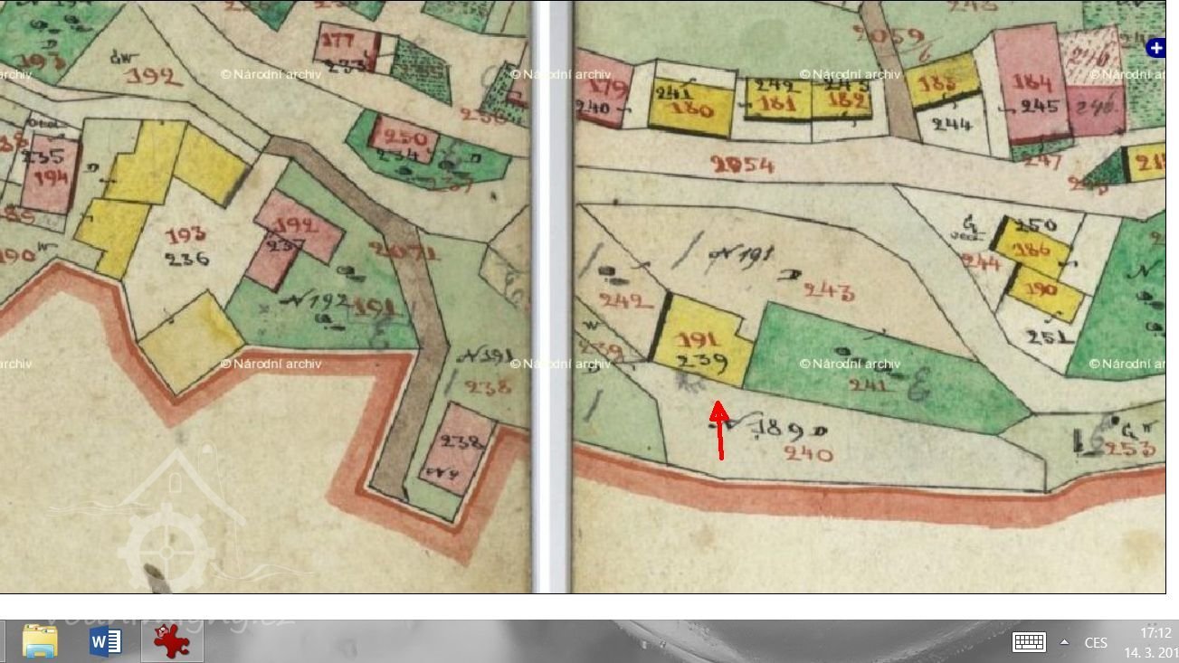 Z map stabilního katastru lze dovodit, že dům prošel zřejmě několika vývojovými etapami, byť se na svém půdorysu příliš nezměnil. V povinném císařském otisku je hlavní průčelí spalného domu označeno směrem k pozemku p.p.č. 240 k.ú. Verneřice, což byla vodní plocha, dnes již zaniklá.