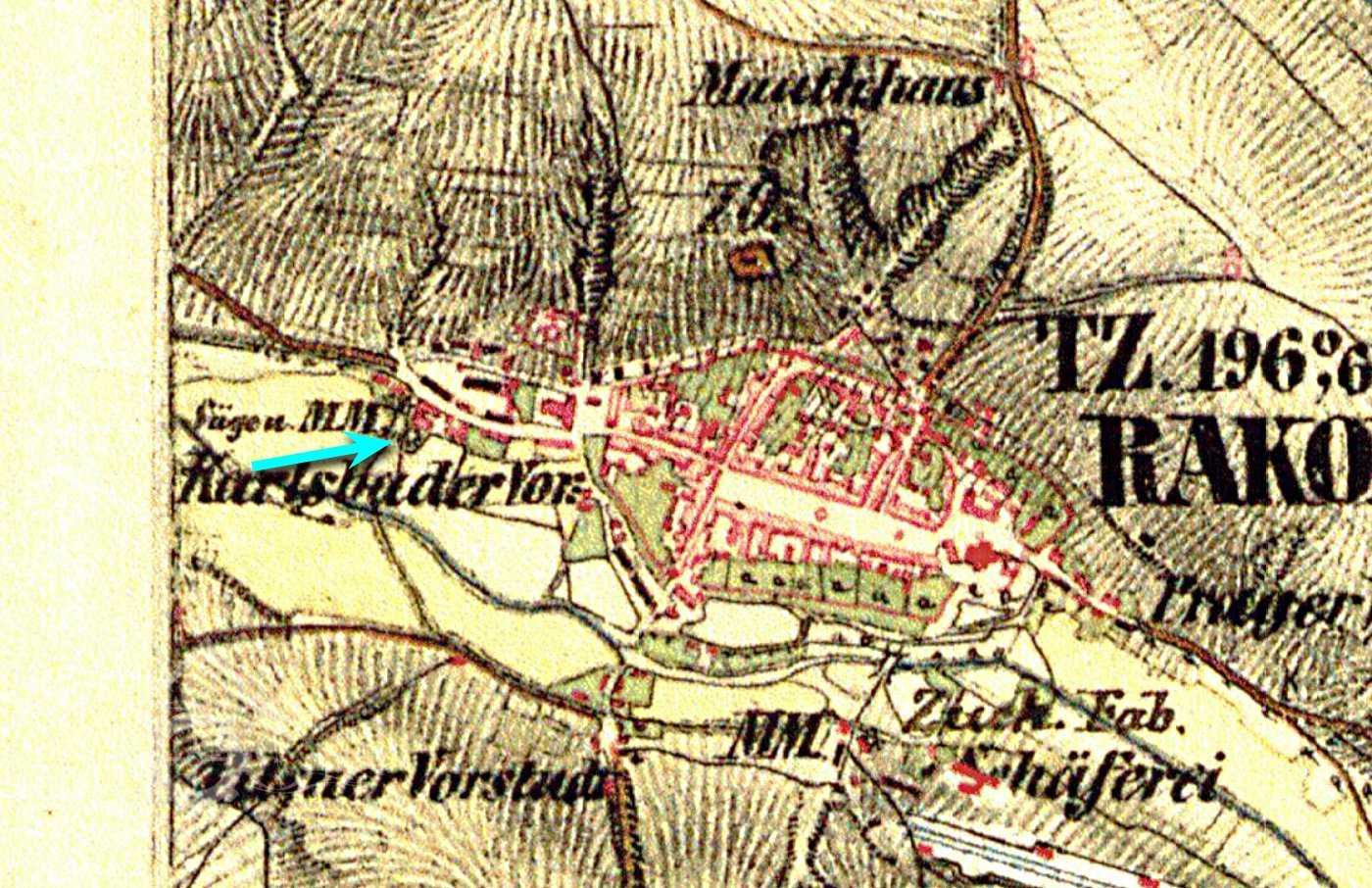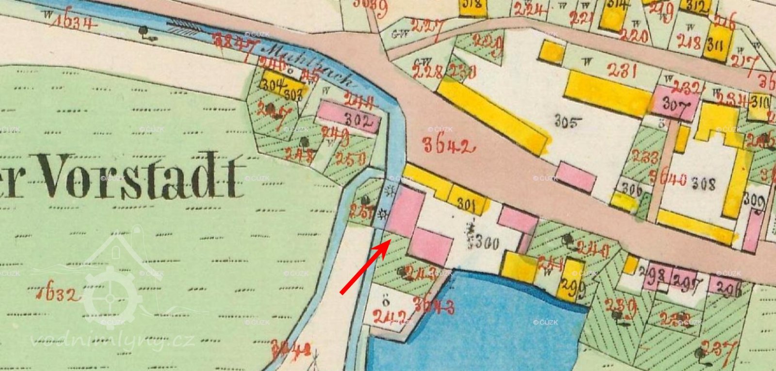 strouhu bylo Vackovi cíditi od kol svých proti vodě až do nového jezu, po vodě do rohu Blažkovy louky (proti stodole Varmúčků), kde byla nová záměra osazena. Jez nad a splav pod mlýnem, kterýž Bosák s mlynářem Na trávníce Jankem Řepínským společně stavěli, byli Vacek i jeho budoucí povinni dělati sami, Jankovi bylo cídit strouhy od záměry až do svých kol.