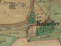 „(…) Nalezl jsem zkazku, dle níž na statku číslo domu 5, číslo domu 43 (mlýn) a na mlýně zvaném "Kabelík" (mlýn při hořejším cípu rybníka Velkorojického) byl stejný malovaný znak a dle níž tyto tři budovy byly náležely jednomu majiteli. Jaký tento znak byl, nemohl jsem se dopátrati."
