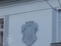 Dvě obdélná okna v patře se štukovými šambránami, nárožní pilastry se stylizovanou hlavicí.