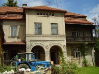 Zastřešení tvoří valbu. Část rizalitu vlevo má v přízemí verandu nesenou dřevěnou zdobnou konstrukcí, zakrytou puhovou střechou. V úrovni patra obdélné, lemované okno, průběžné lemování pod hlavní římsou a mansardová střecha přecházejí ze základní hmoty objektu.