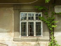 Okna jsou kovová, dělená do malých obdélníkových tabulek, horní třetina je vyklápěcí.