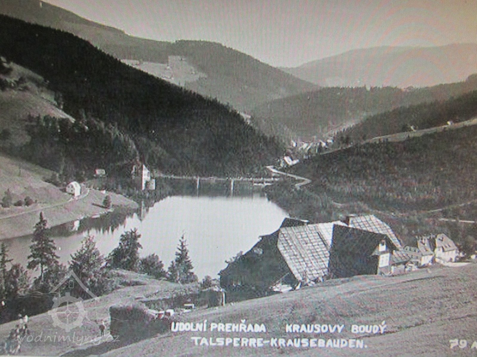 Kvůli častým a ničivým povodním byla v r.1910 na základě zákona z r. 1903 zahájena na Labi v úrovni osady Krausovy Boudy stavba protipovodňové přehrady. Krausův mlýn se nacházel na pravém břehu Labe blízko nad místem, kde stojí přehradní hráz a musel být proto zbourán, neboť mlýniště i jeho okolí bylo následně zatopeno přehradou. Přehrada byla dokončena v r. 1916.
