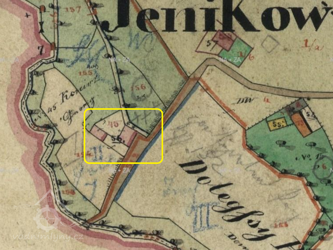 Mlýn je poprvé vyobrazen na mapách stabilního katastru a II. vojenského mapování. (MH)