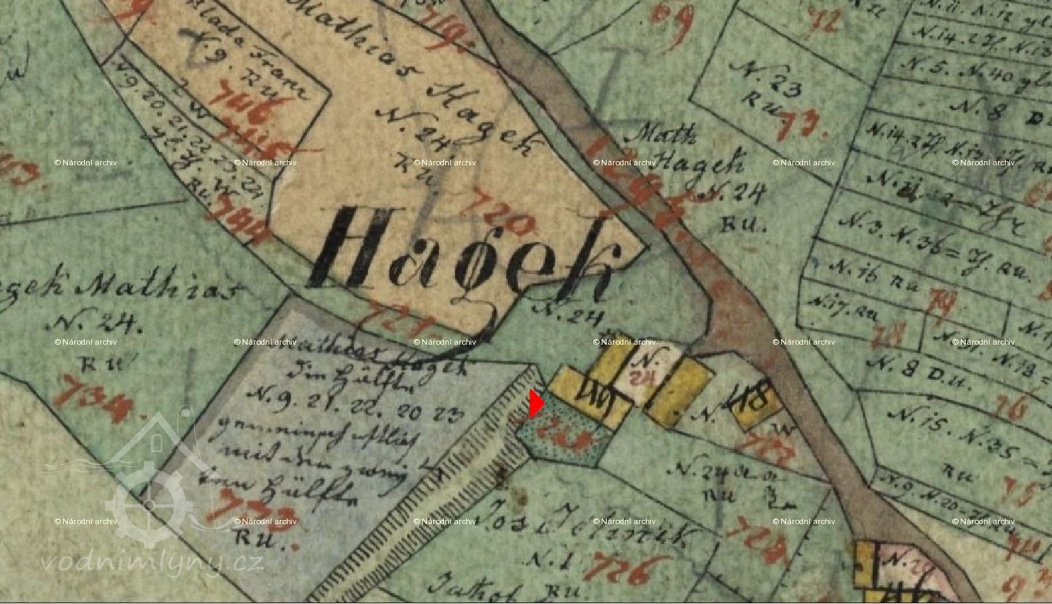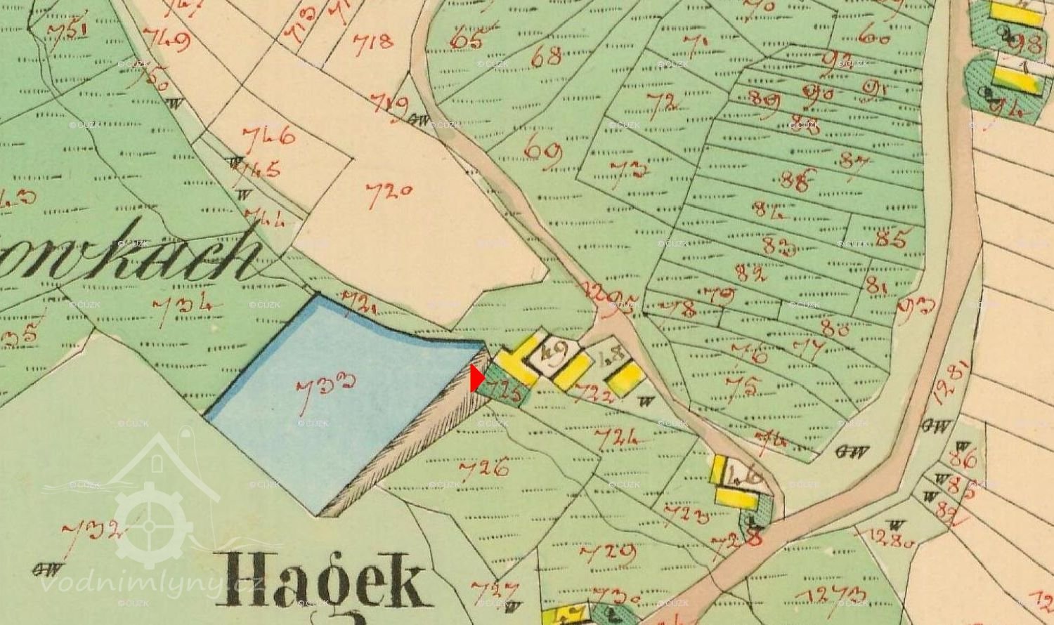 Popis1930: 1 kolo na svrchní vodu, hltnost 0,084 m3/s, spád 4,15 m, výkon 3 HP