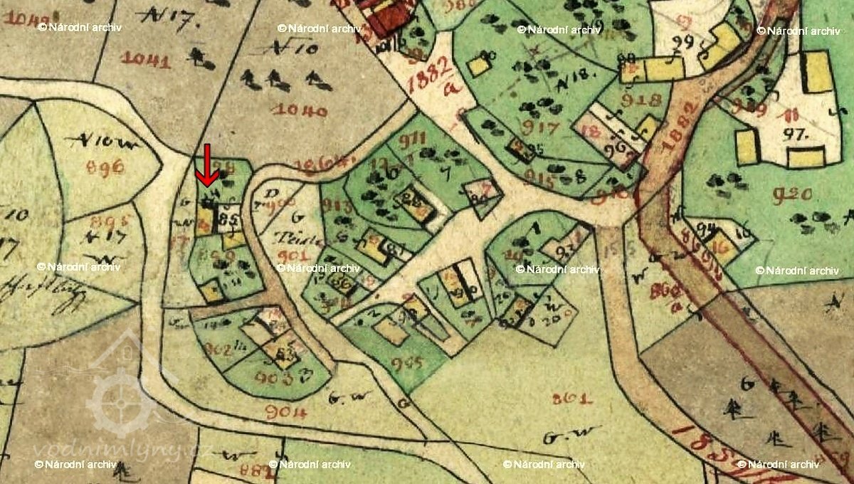 Mlýn stál přímo ve vsi již před rokem 1704.