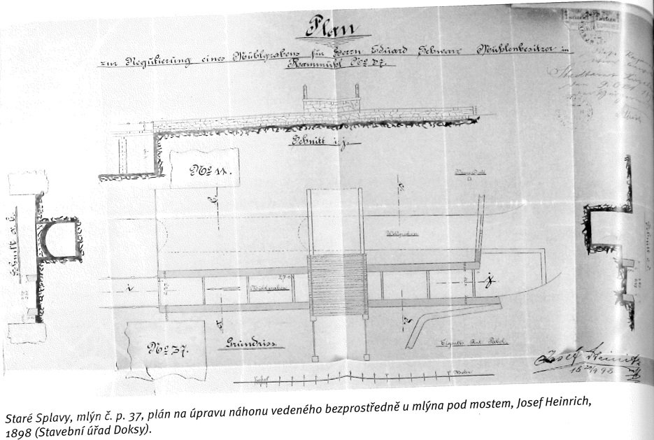 1898 Okresní úřad v Dubé schválil plány stavitele Josefa Heinricha k regulaci náhonu. Nátok umístěn v prostoru dnešního čp. 56, nové zděné koryto mělo mít světlou šířku 2,37 m a podcházelo dřevěný most, na který navazoval stávající klenutý most přes hlavní potoční koryto. Zděné koryto náhonu mělo ústit poblíž východního nároží mlýnské budovy do dřevěných vantroků, které byly posazeny na zděné pilíře.