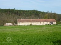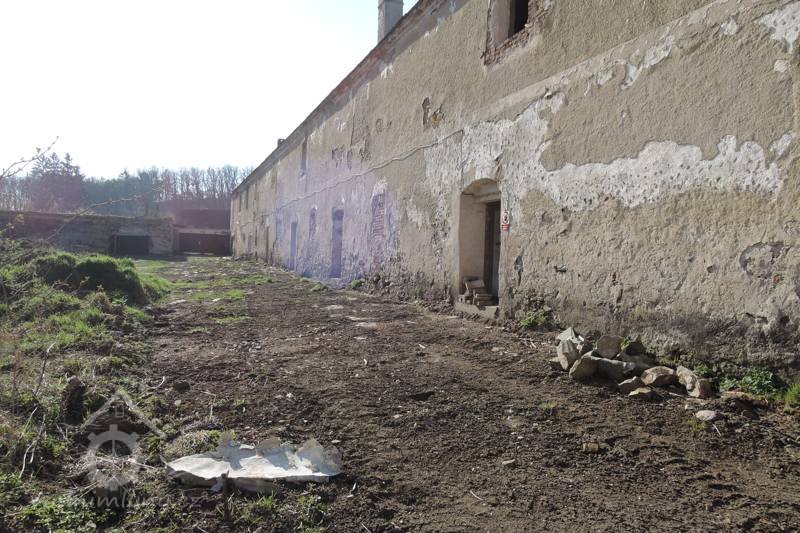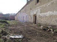 - Vrátíme-li se k funkci dlouhé klenuté místnosti v přízemí, která by měla mít klíčové postavení př identifikaci původního účelu stavby, pak lze uvažovat o stáji pro hovězí dobytek. Její šířka - a tím i daná šířka celé budovy -, stejně jako její délka, se zda jí být jediným smysluplným funkčním rozměrem celé budovy. Šířka prostory by odpovídala ustájení hovězího dobytka ve dvou řadách, její délka by pak svědčila o chovaném množství dobytka, jehož větší počty jsou ostatně doloženy i z kronikářských záznamů novokřtěnců. Péče o dobytek, představující je d en z hlavních zdrojů stravy pro příslušníky komunity, patřila ke stěžejním hospodářským činnostem novokřtěnců. Dodejme, že propojení obytných prostor s chlévy “pod jednou střechou" je také v obecném pohledu příznačné pro německé etnikum, z něhož většina příslušníků komunity pocházela, dochovalo se rovněž v německy mluvících oblastech i na našem území v lidovém stavitelství.