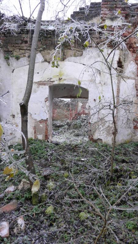 - Jediné známky reprezentativnějšího charakteru představuje vchod do velké místnosti v zadním traktu hlavní obytné budovy. Má profilované lišty kolem dveří a může pocházet ještě z období novokřtěnců. Místnost nepochybně sloužila jako hostinský pokoj pro návštěvníky z řad šlechty, kteří se v novokřtěneckých dvorech zastavovali kvůli noclehu a pohoštění na cestách, hlavně však pro návštěvu proslulých novokřtěneckých lázní. Tato praxe je opět doložena v m noha novokřtěneckých i domácích pramenech.