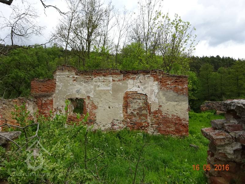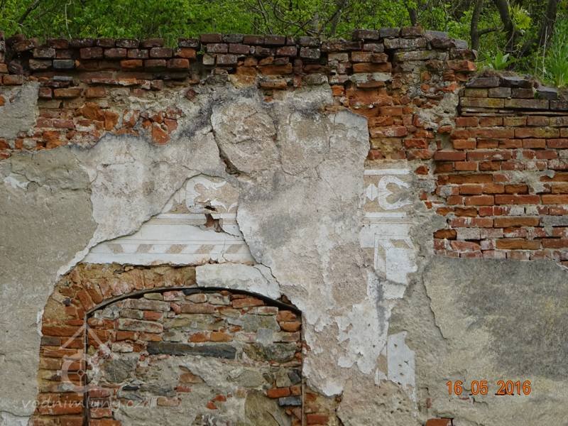 - Existenci I. patra, které vzniklo společně s přízemím , dokládá jednolitý charakter stavby a především jednotná fasáda přízemí i 1. patra, opatřená sgrafity. Podle členění výzdoby se v přízemí nacházejí tři vchody: jeden do hlavních obytných místností, druhý do nejdelší klenuté místnosti a třetí do provozní části s kuchyní a pekárnou. V přízemní fasádě převažují menší okna, zatím co v předním průčelí hlavní obytné budovy a k němu přilehlé místnosti, stejně jako v zadním průčelí a přilehlé pekárně, jsou viditelná větší okna, z nichž jedno se zachovalo kompletně na zadním průčelí. Byla tak vytvořena zcela symetrická kompozice stavby, v níž v přízemí dominovala dlouhá funkční prostora a nad nimi v 1. patře spojovací chodba v délce 43 m (původně v délce 39,5 m - zadní část chodby byla upravena z klenuté předsíně). Jednolitost stavby a kompoziční záměr obou částí, přízemí i I. patra, jsou tedy patrné už z půdorysu samotné stavby. Myslím, že tím je zcela vyloučena možnost dodatečné dostavby “zámku s hlavním sálem" v I. patře, která měla údajně probíhat v osmdesátých letech 1 7. století.