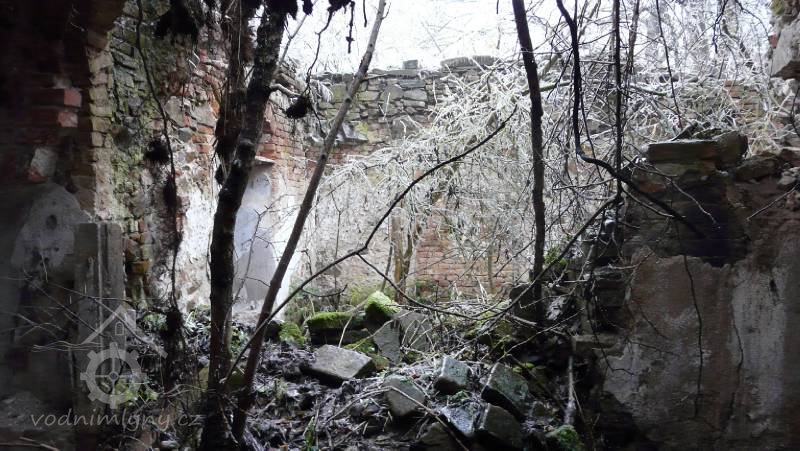 - Není pochyb, že hlavní obytná budova byla už od svého vzniku dvoupodlažní, tedy přízemí a I. patro. Podle J. Sadílka bylo vystavěno 1. patro nad hospodářskou budovou dodatečně v osmdesátých letech 17. století jako “zámek s hlavním sálem Pokud měla být budova původně přízemní, neměla by tedy schodiště do 1. patra. Obě dochovaná schodiště - hlavní v obytné části i vedlejší v provozní části - však zřetelně dokládají, že se s nimi počítalo už v úvodním projektu, jsou organicky začleněna do prostoru a odpovídají jeho funkčnímu členění, navíc jsou symetricky umístěna v obou protilehlých částech celé stavby. U hlavního i vedlejšího schodiště je jejich zaklenutí souhlasné s ostatním i klenutými prvky stavby, včetně začlenění do klenutých předsíní v I. patře. Stejný charakter kleneb a jejich provedení vykazuje i vedlejší obytná budova u mlýna.